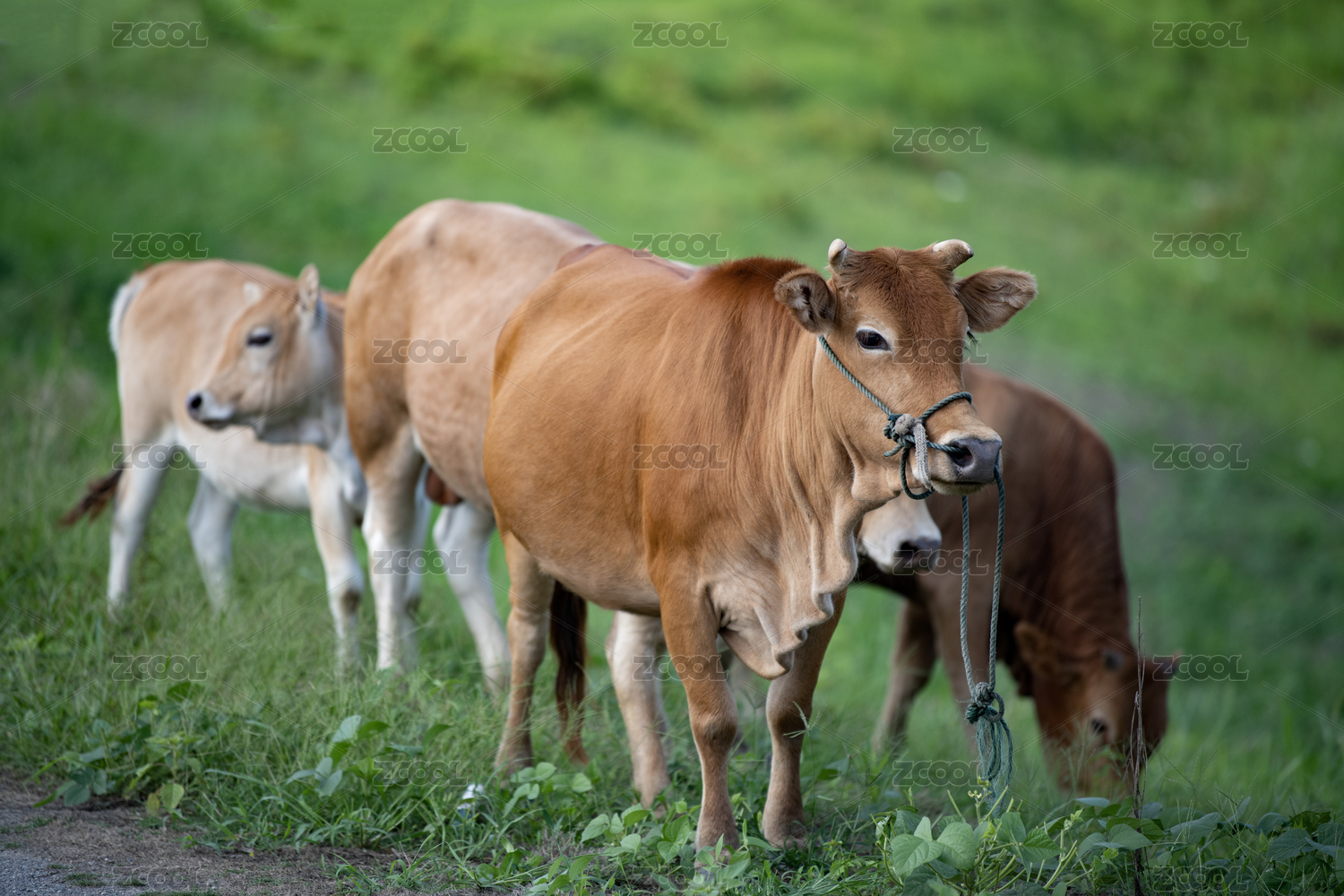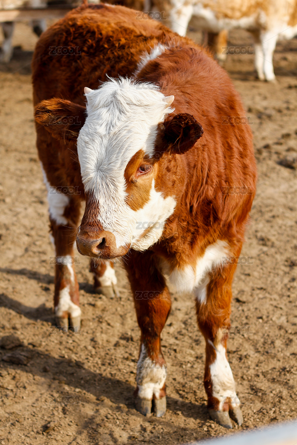 一頭側臉看鏡頭的棕白花色的小肉牛