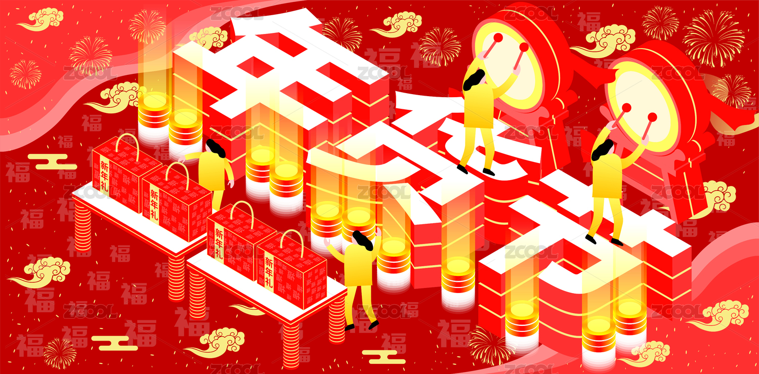 紅色喜慶年貨節(jié)熱賣矢量插畫
