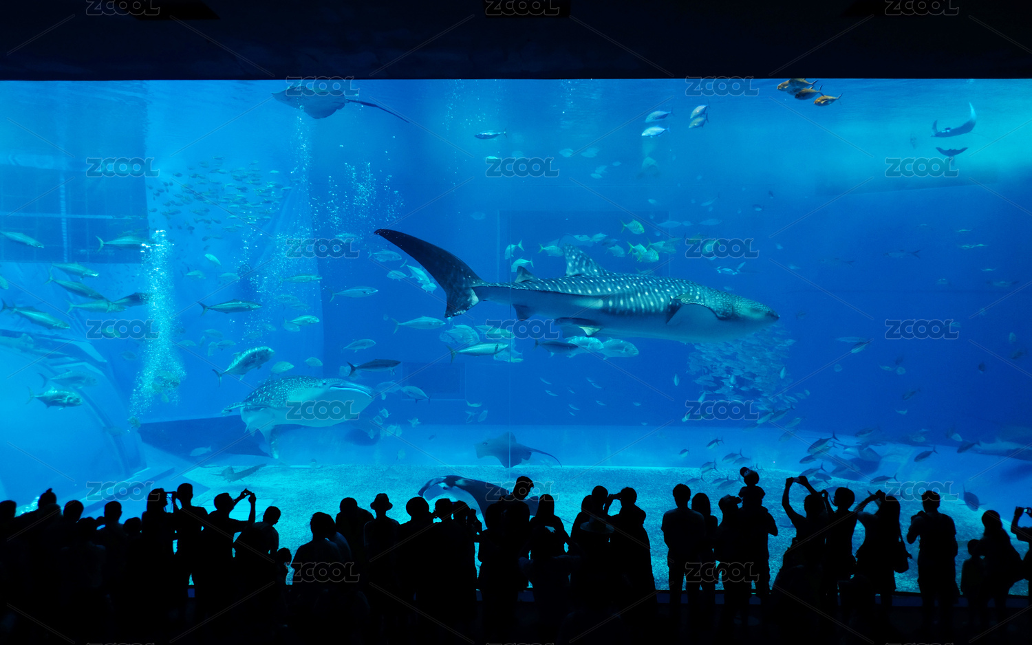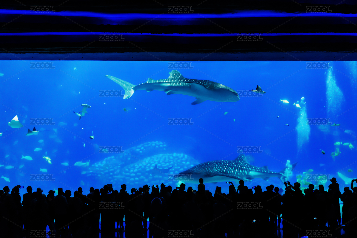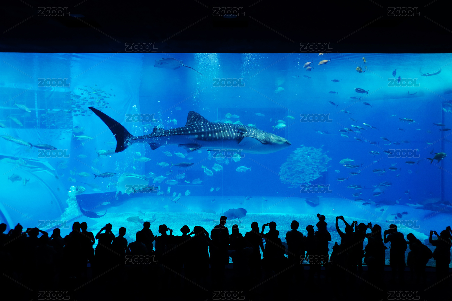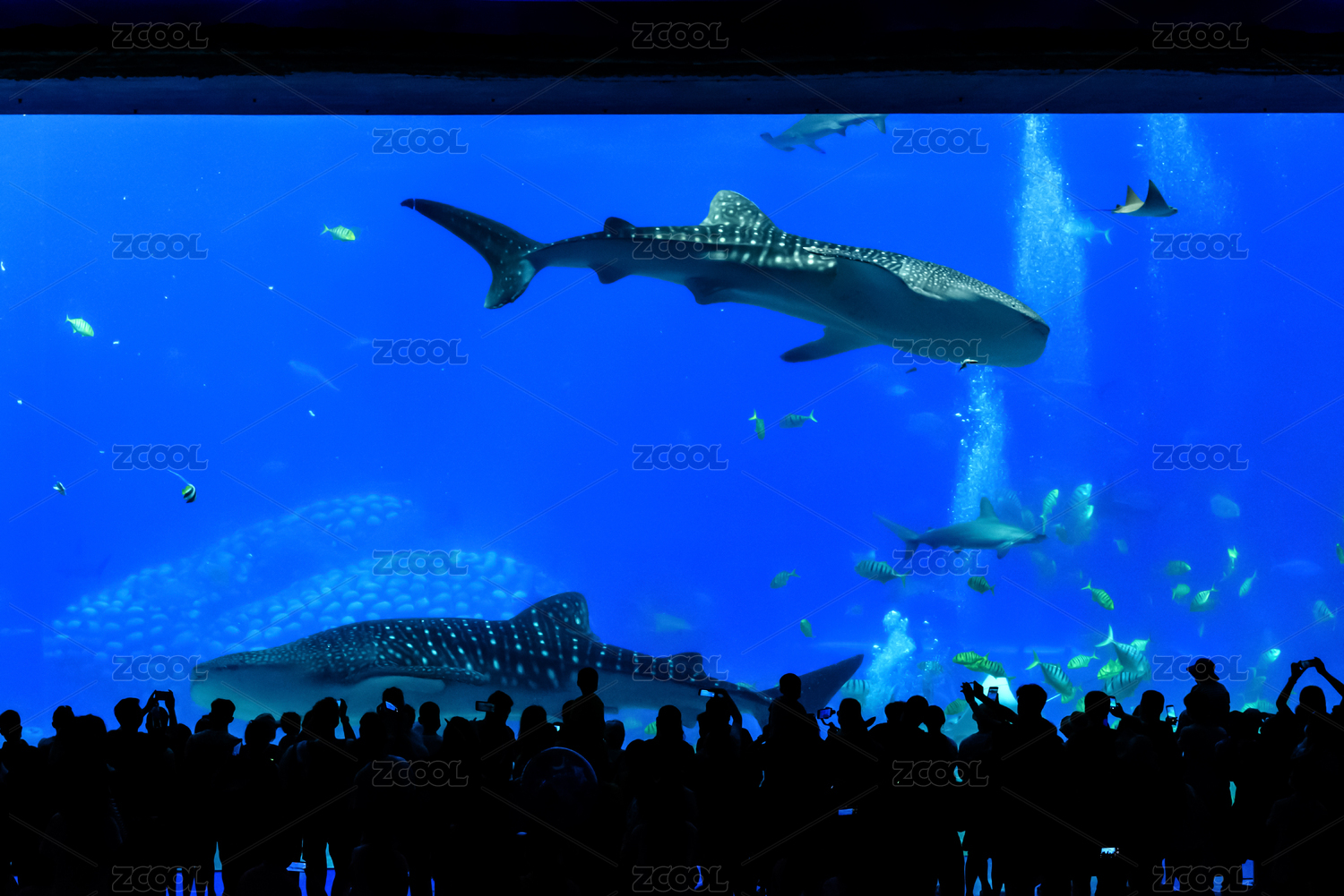 海底游動(dòng)的魚(yú)群,珠海長(zhǎng)隆海洋王國(guó)鯨鯊館