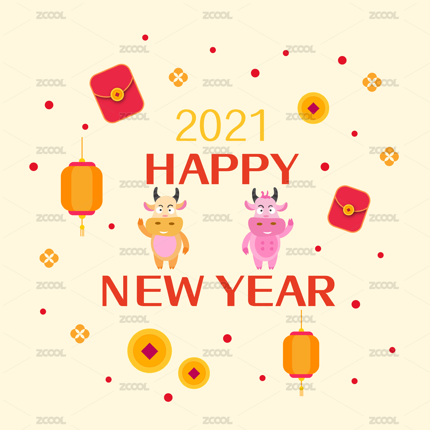 2021牛年扁平風(fēng)格中國(guó)元素插畫