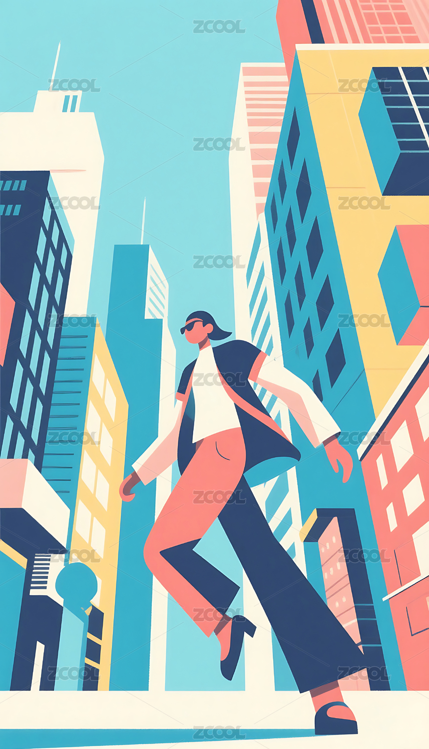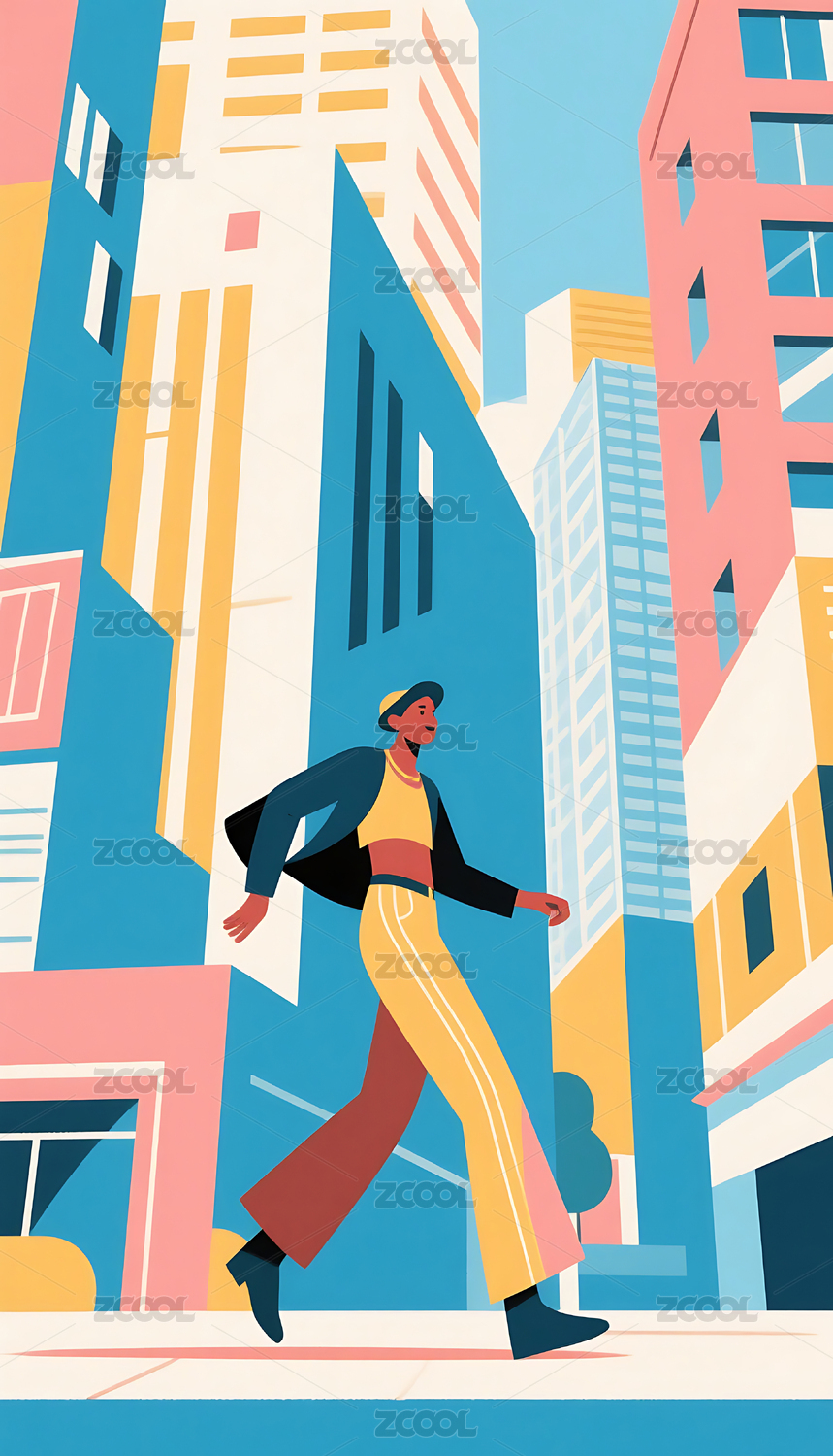 抽象藝術(shù)幾何圖形人物城市建筑插畫