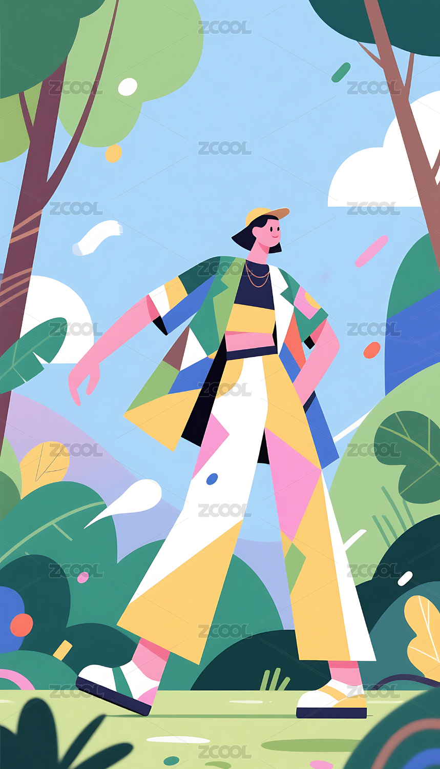 抽象藝術(shù)幾何圖形人物自然戶外插畫