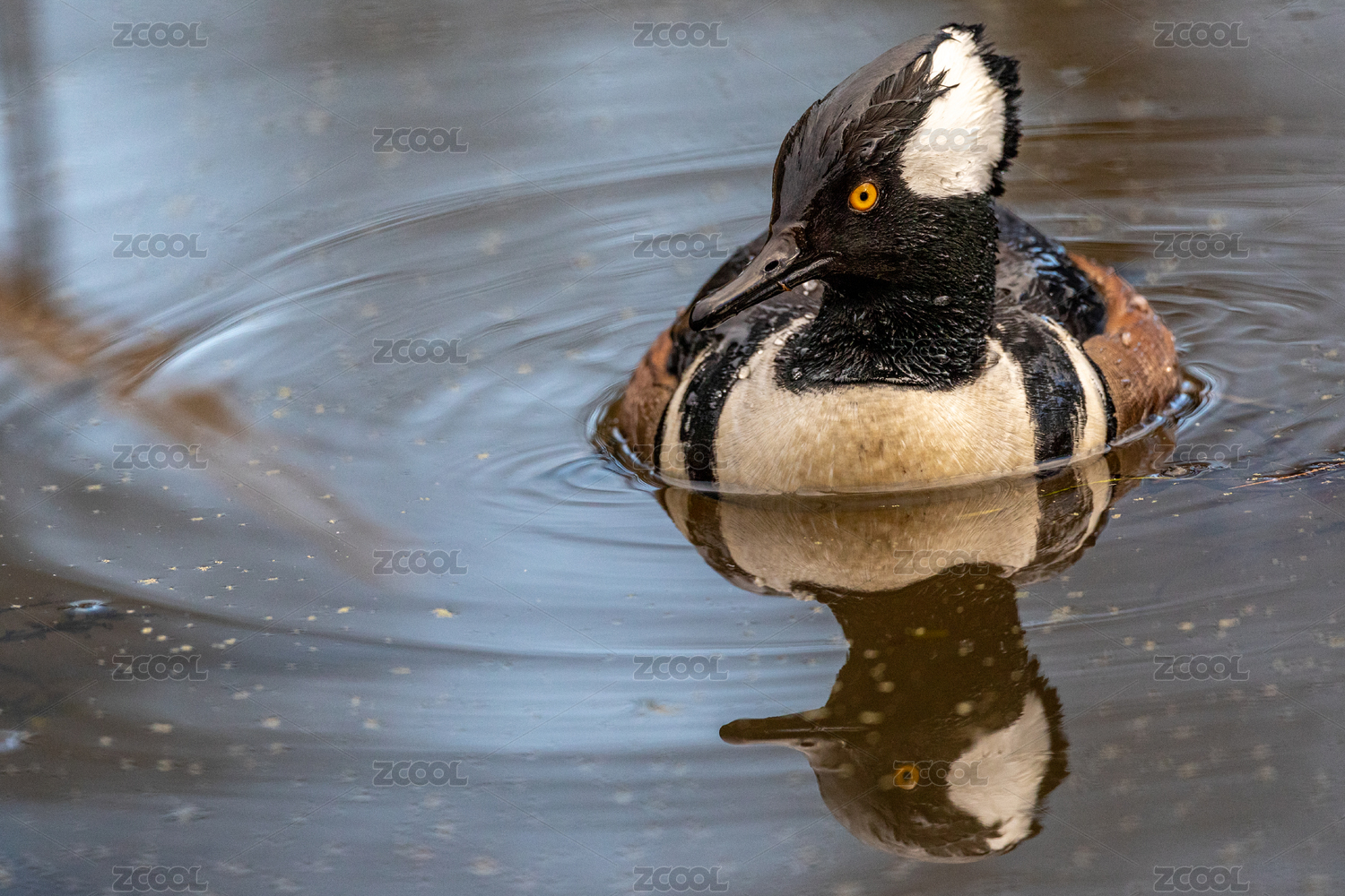 秋沙鴨與它的水中倒影