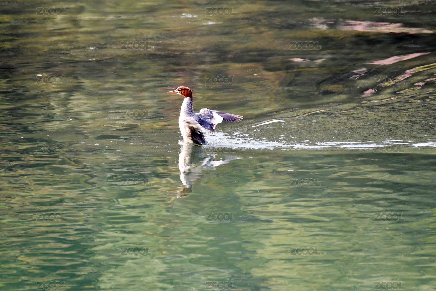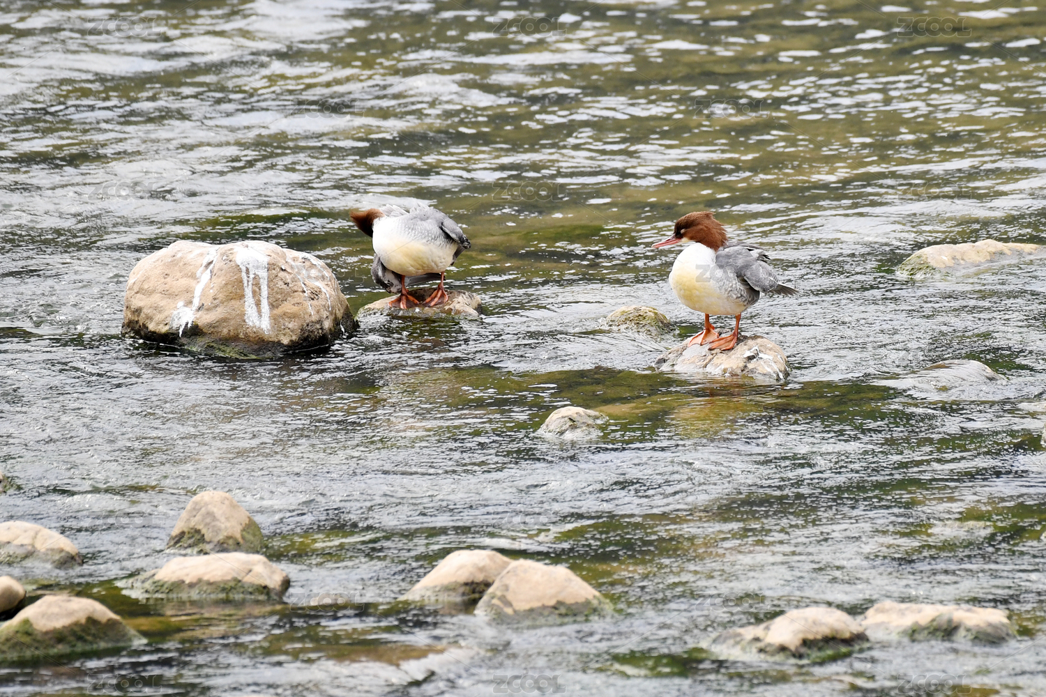 中國浙江麗水甌江九龍濕地的秋沙鴨