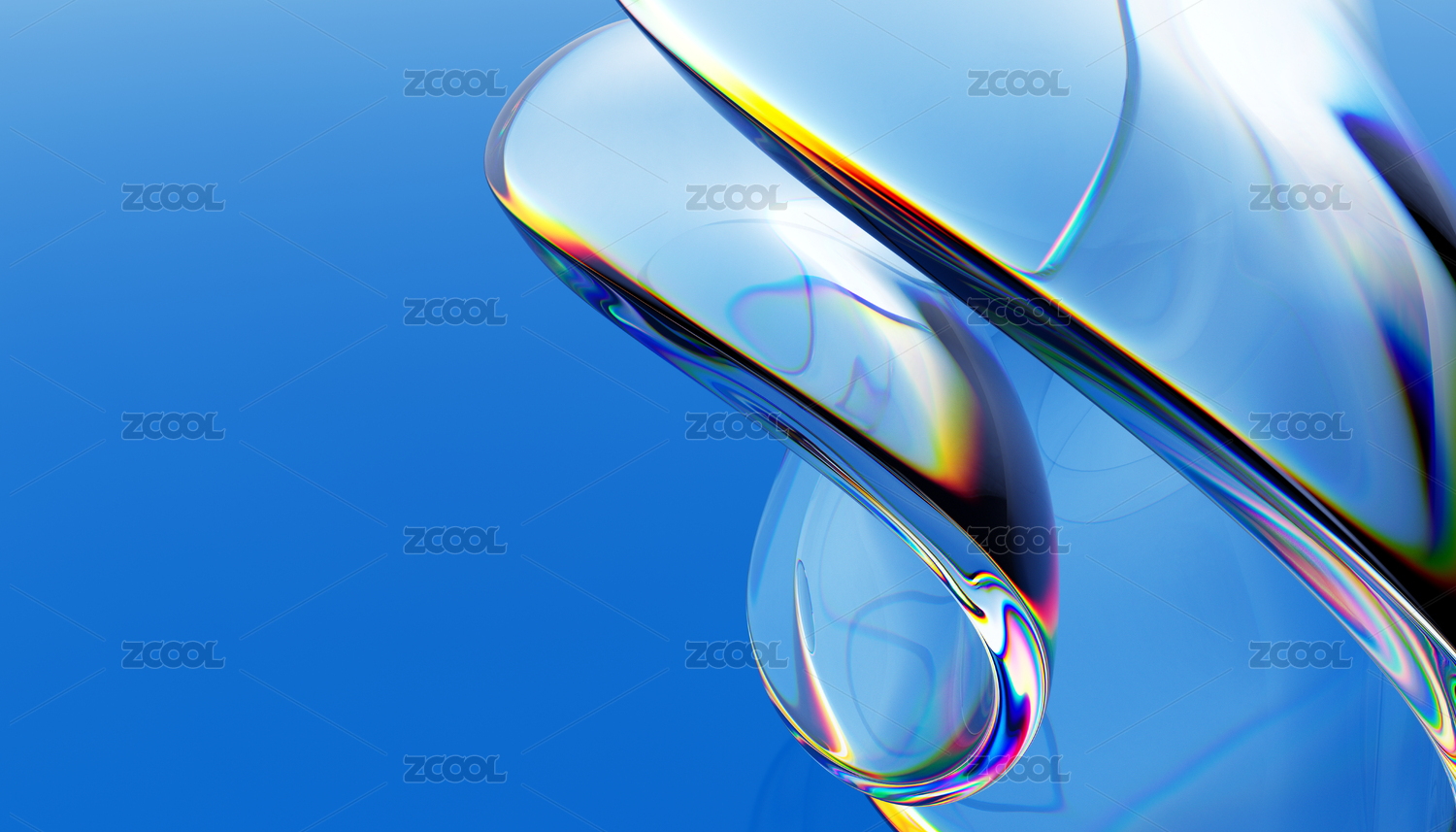 三維渲染藍色背景下強烈玻璃質(zhì)感的物體