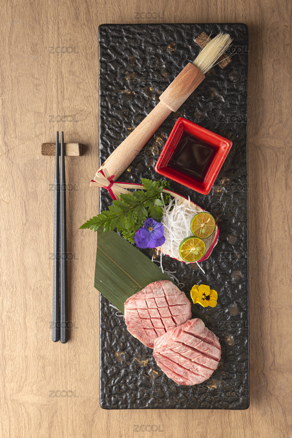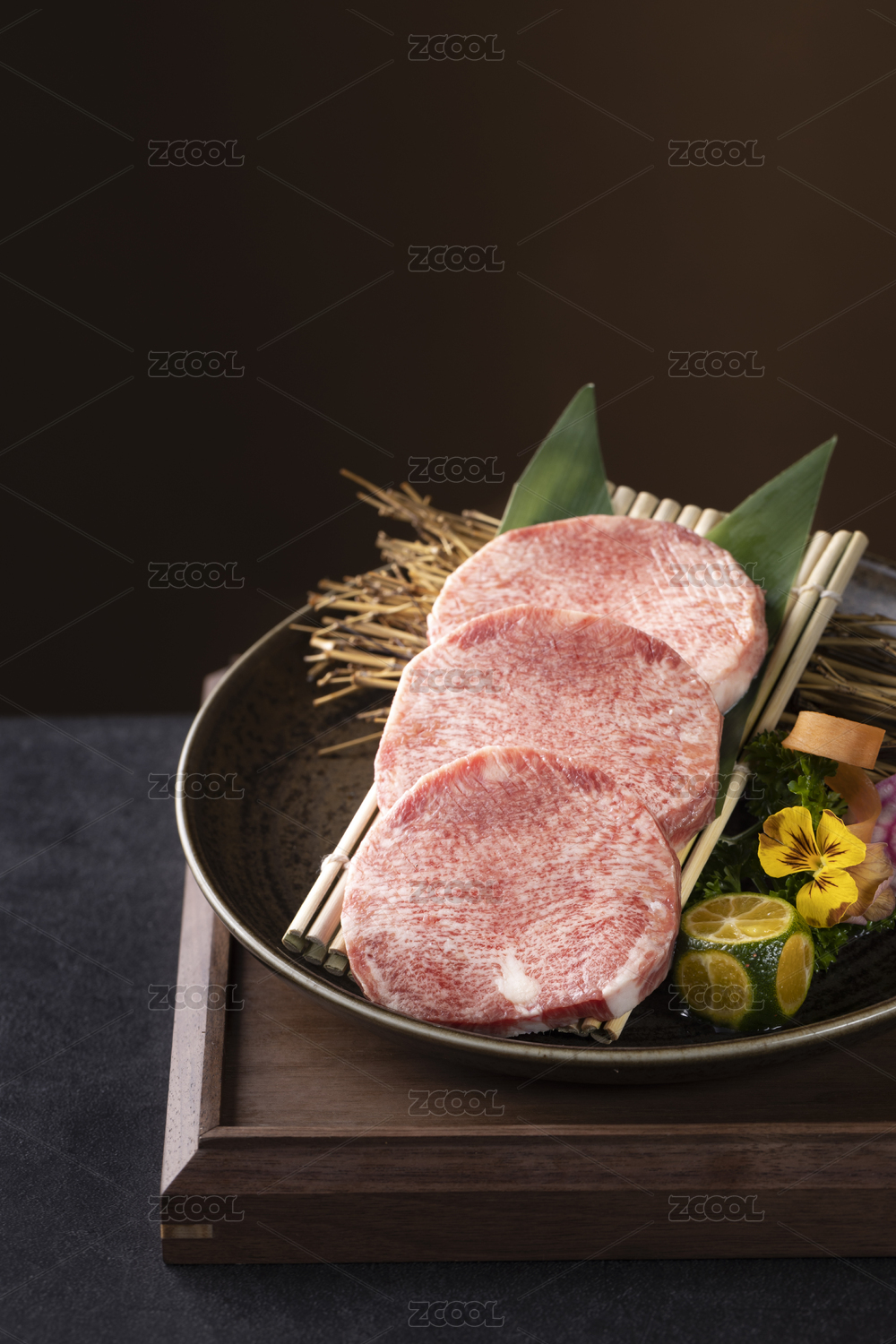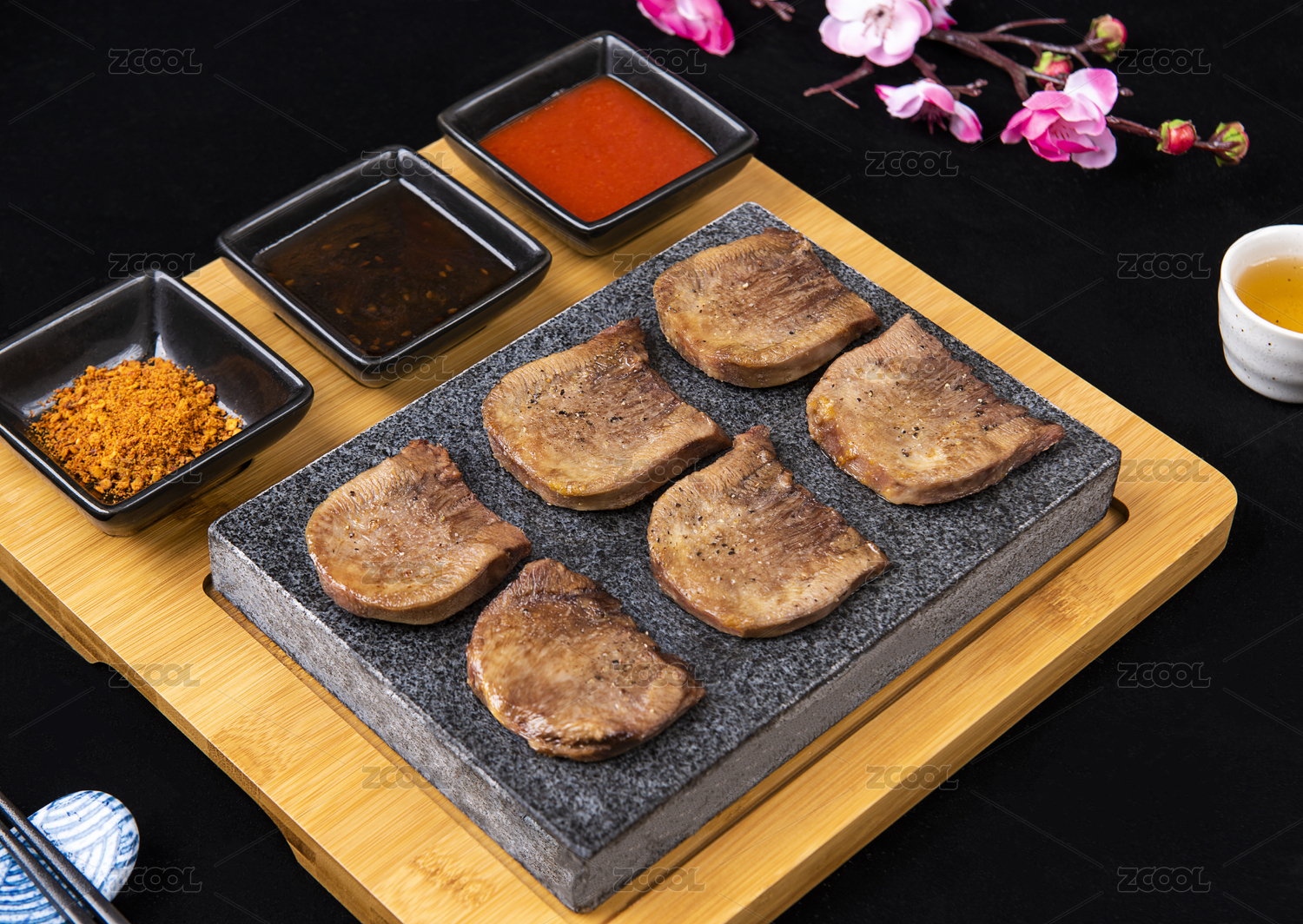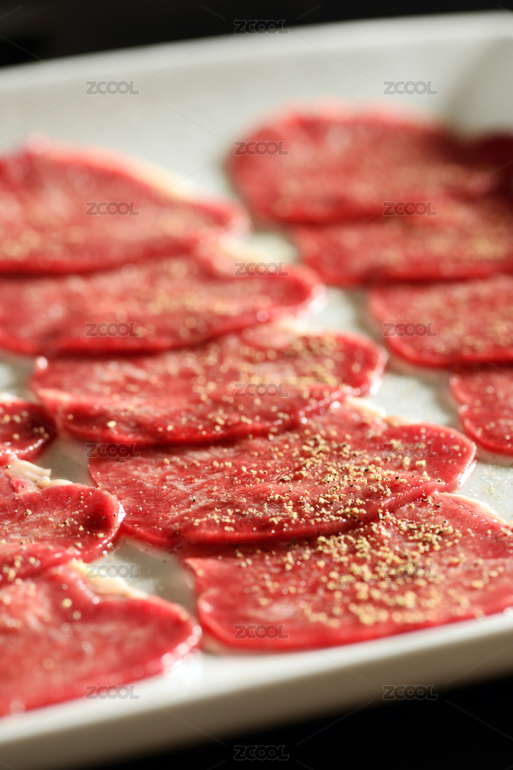 盤子里的燒烤日式料理烤肉食材生牛舌片