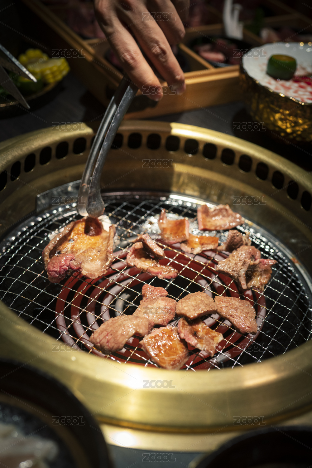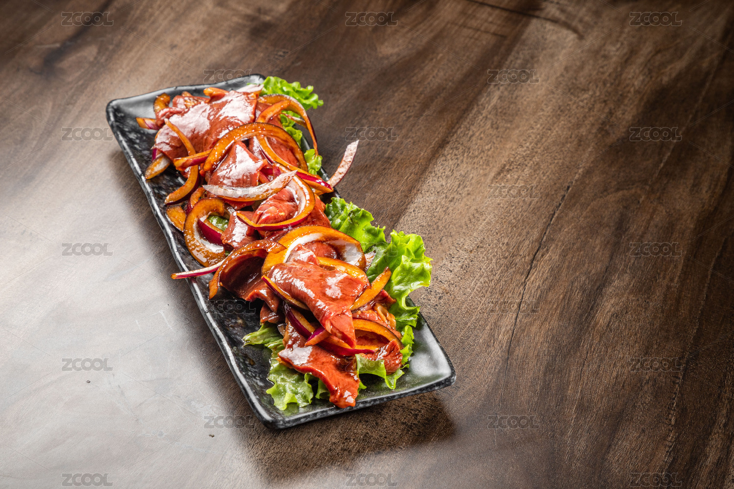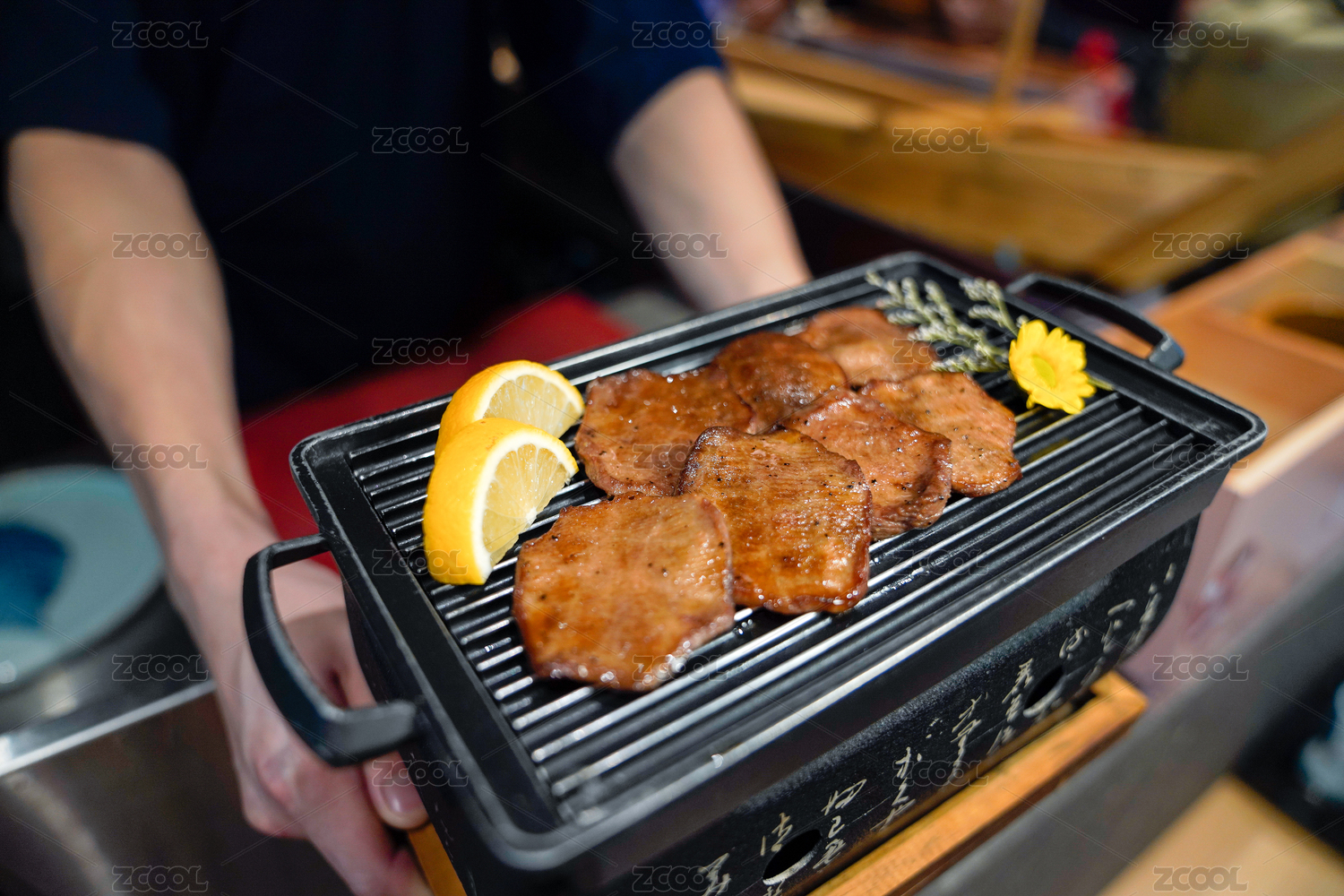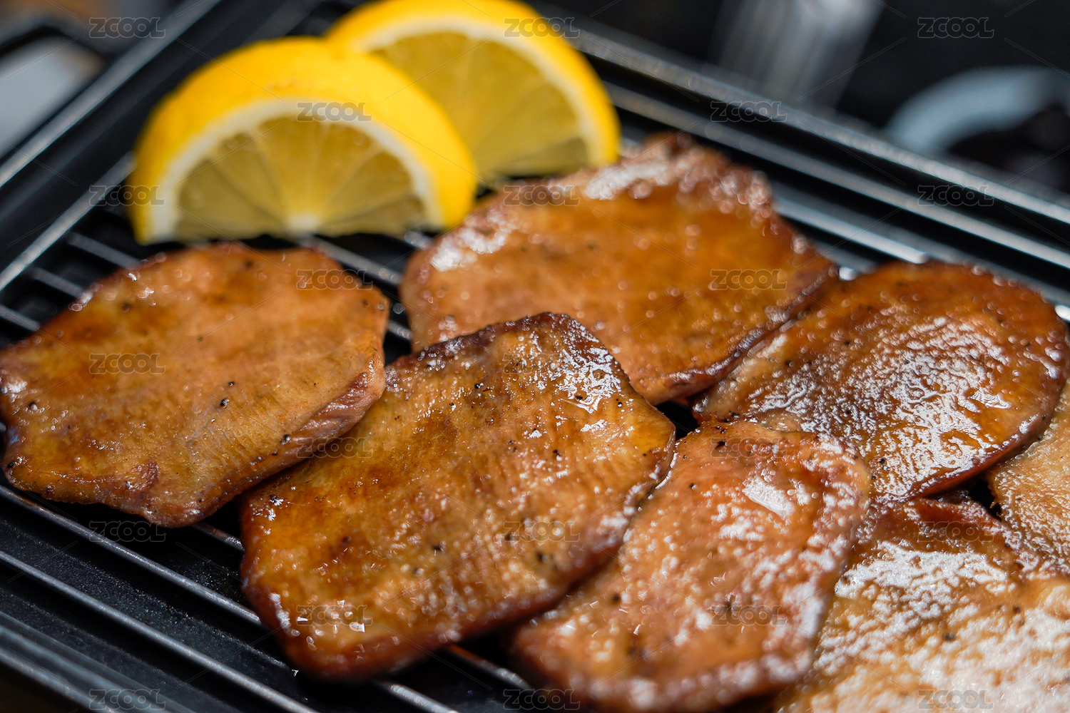 盤子里的燒烤日式料理烤肉食材生牛舌片