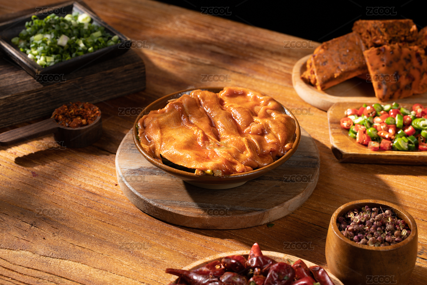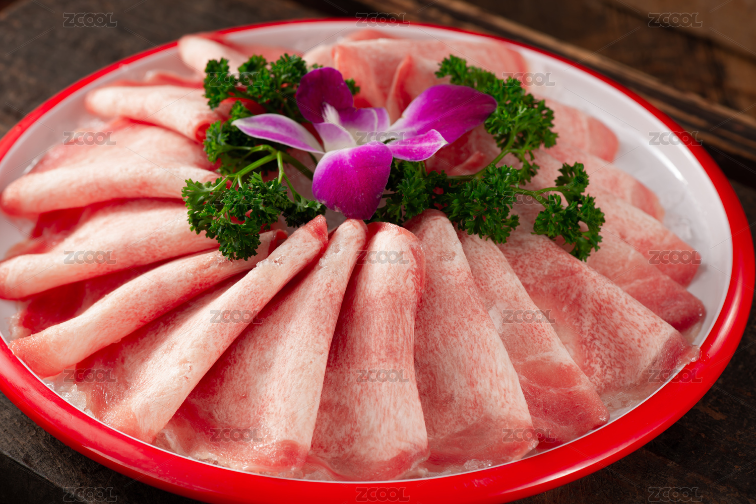 土碗里的川渝火鍋配菜品鮮切腌制牛舌