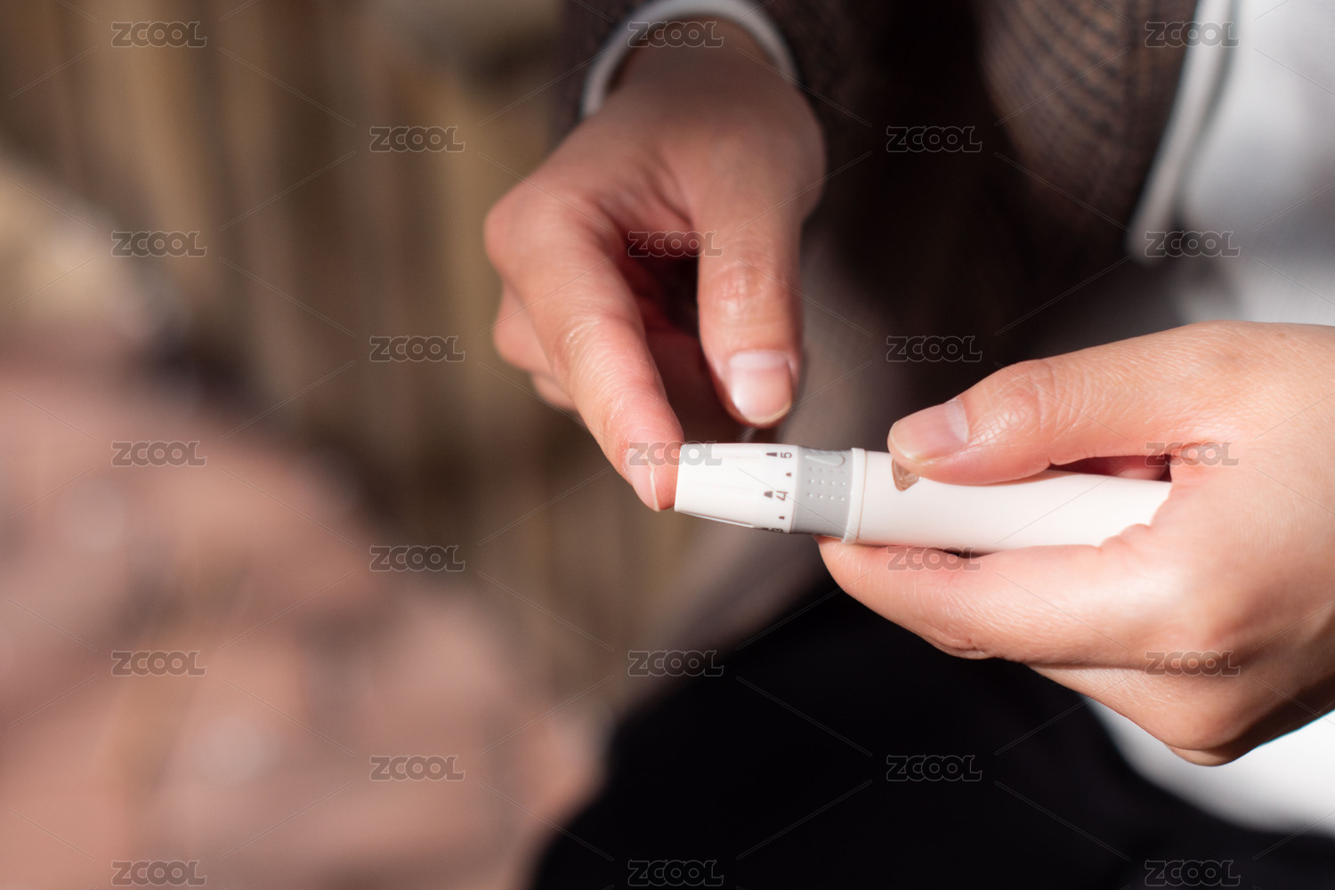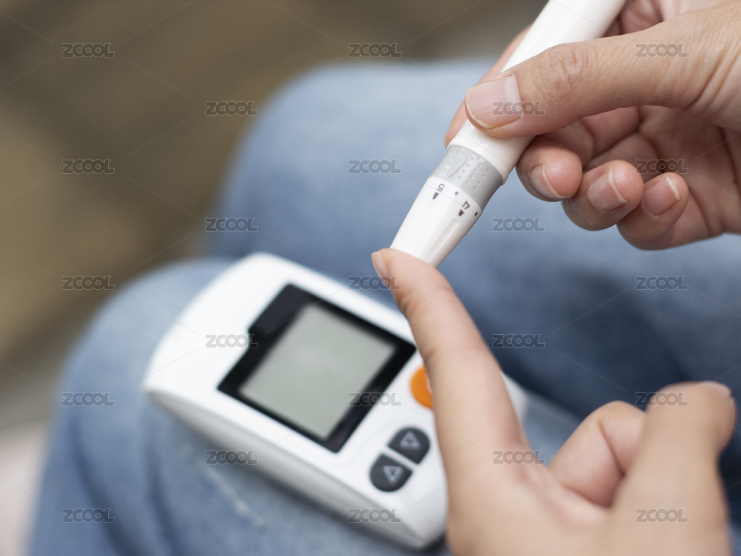 糖尿病、血糖、男性手指糖尿病采集血液場景