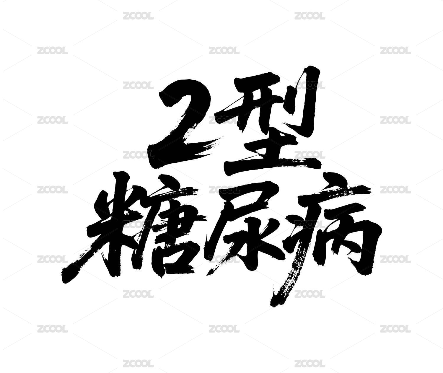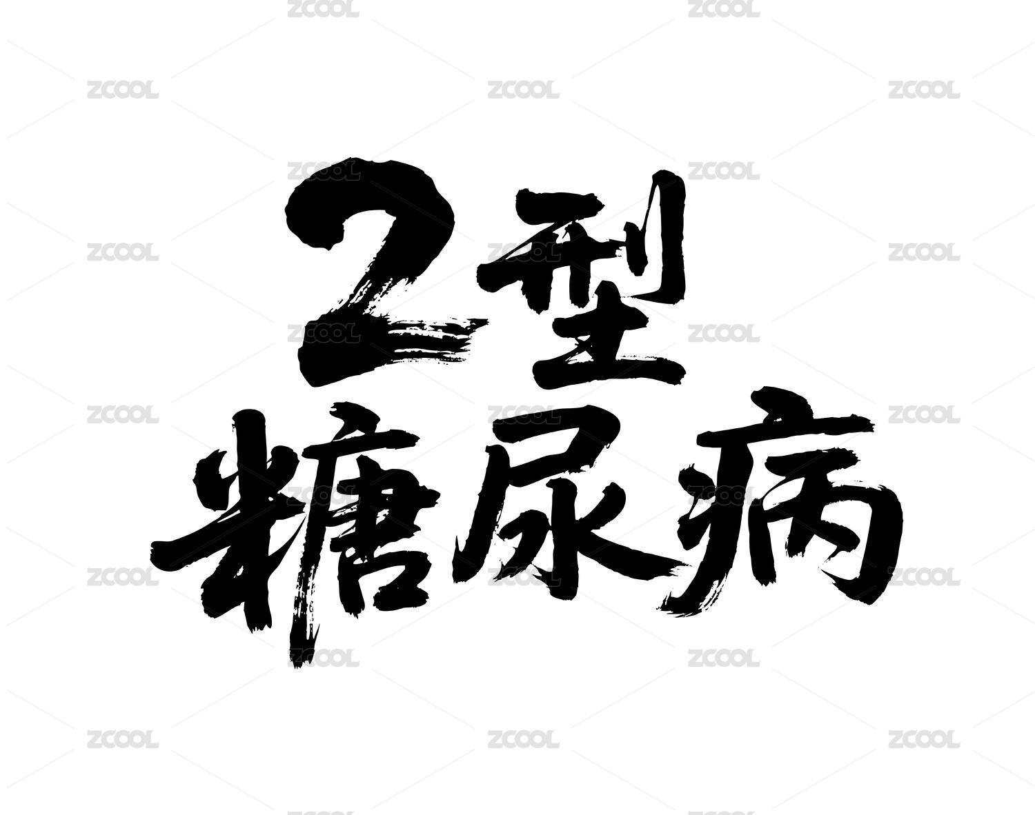2型糖尿病矢量書法手寫毛筆字