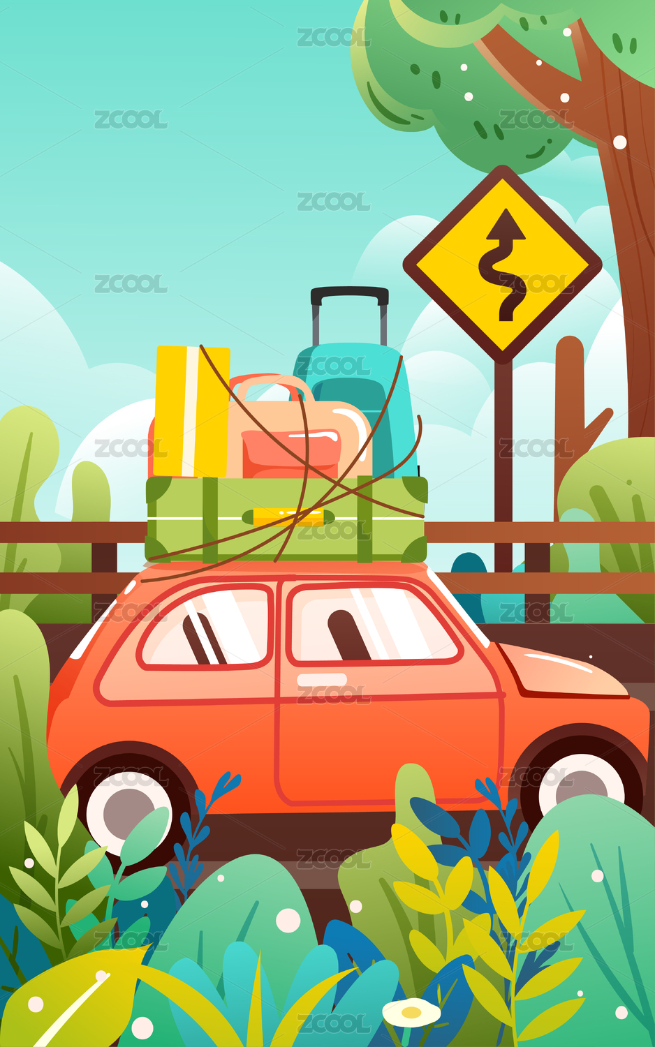 五一勞動節(jié)放假旅行插畫汽車自駕游出行海報