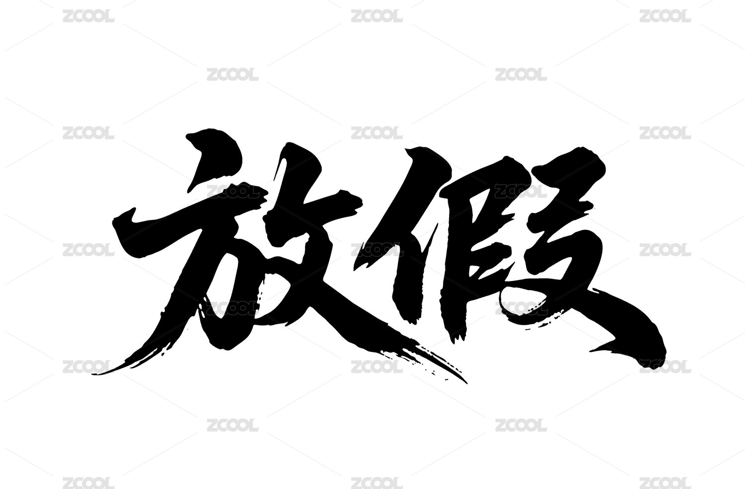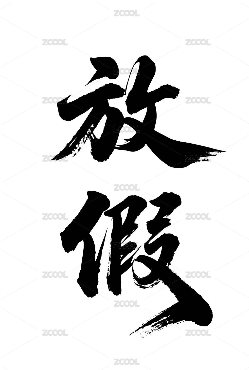 放假矢量書法手寫毛筆字