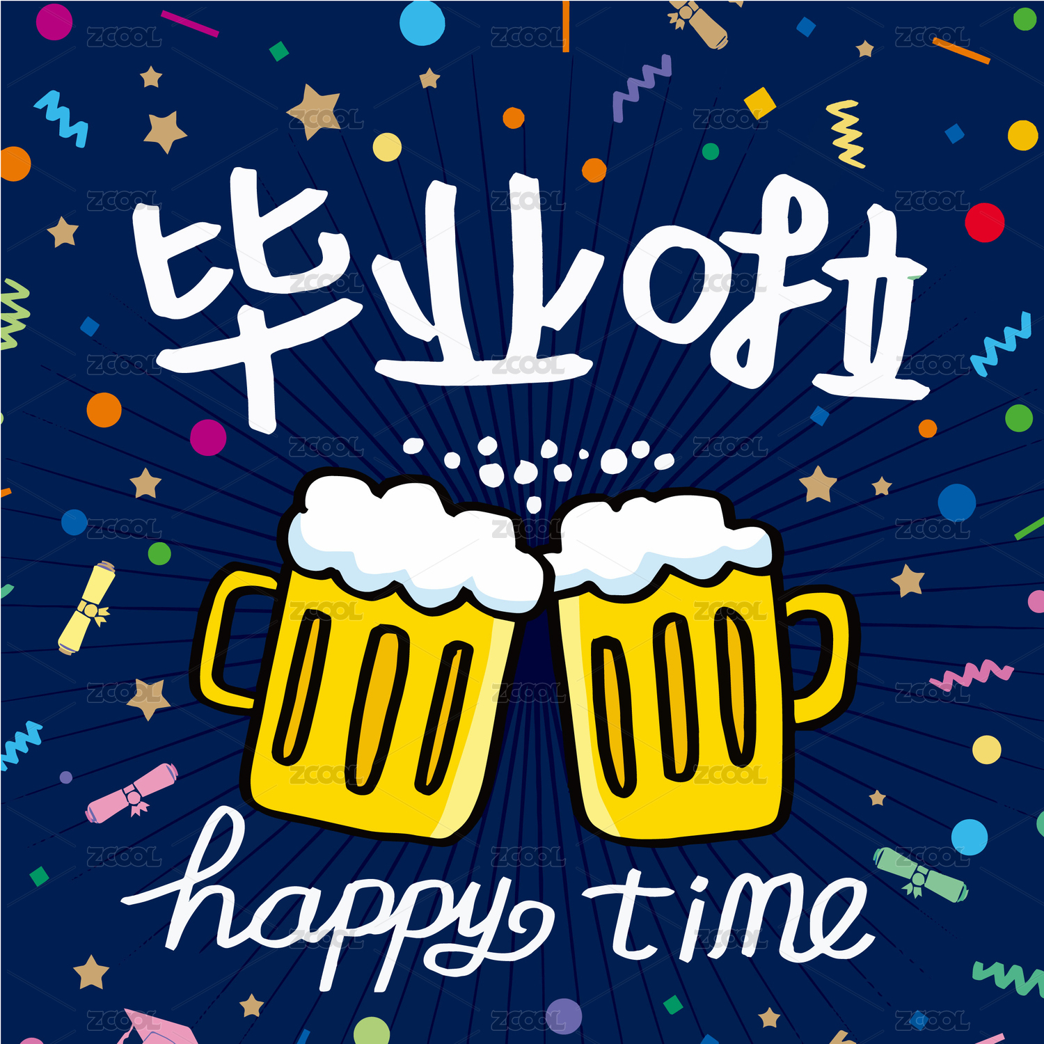 畢業(yè)啦手繪矢量圖插畫
