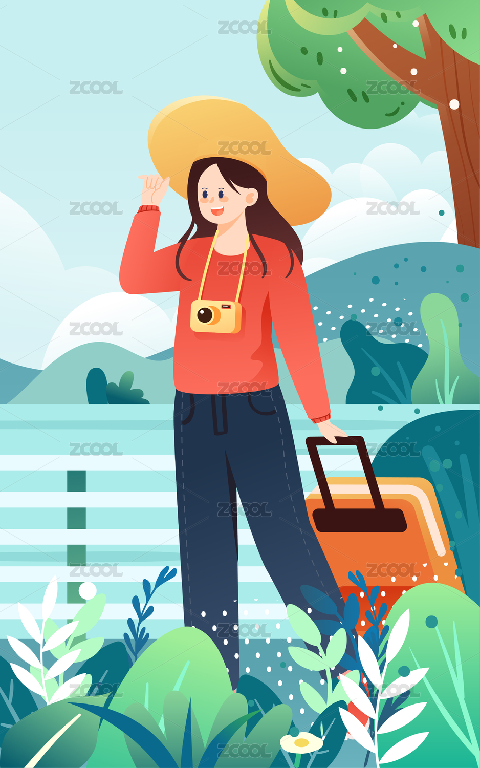 五一勞動節(jié)放假旅行插畫春天旅游自由行海報