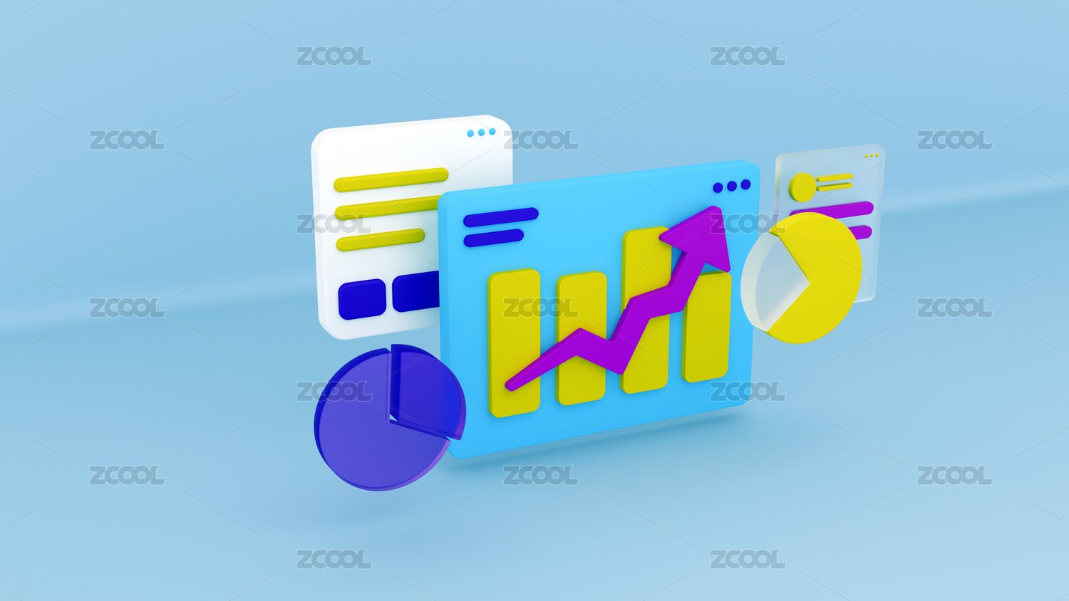 藍(lán)色的科技感數(shù)據(jù)百分比3d圖標(biāo)