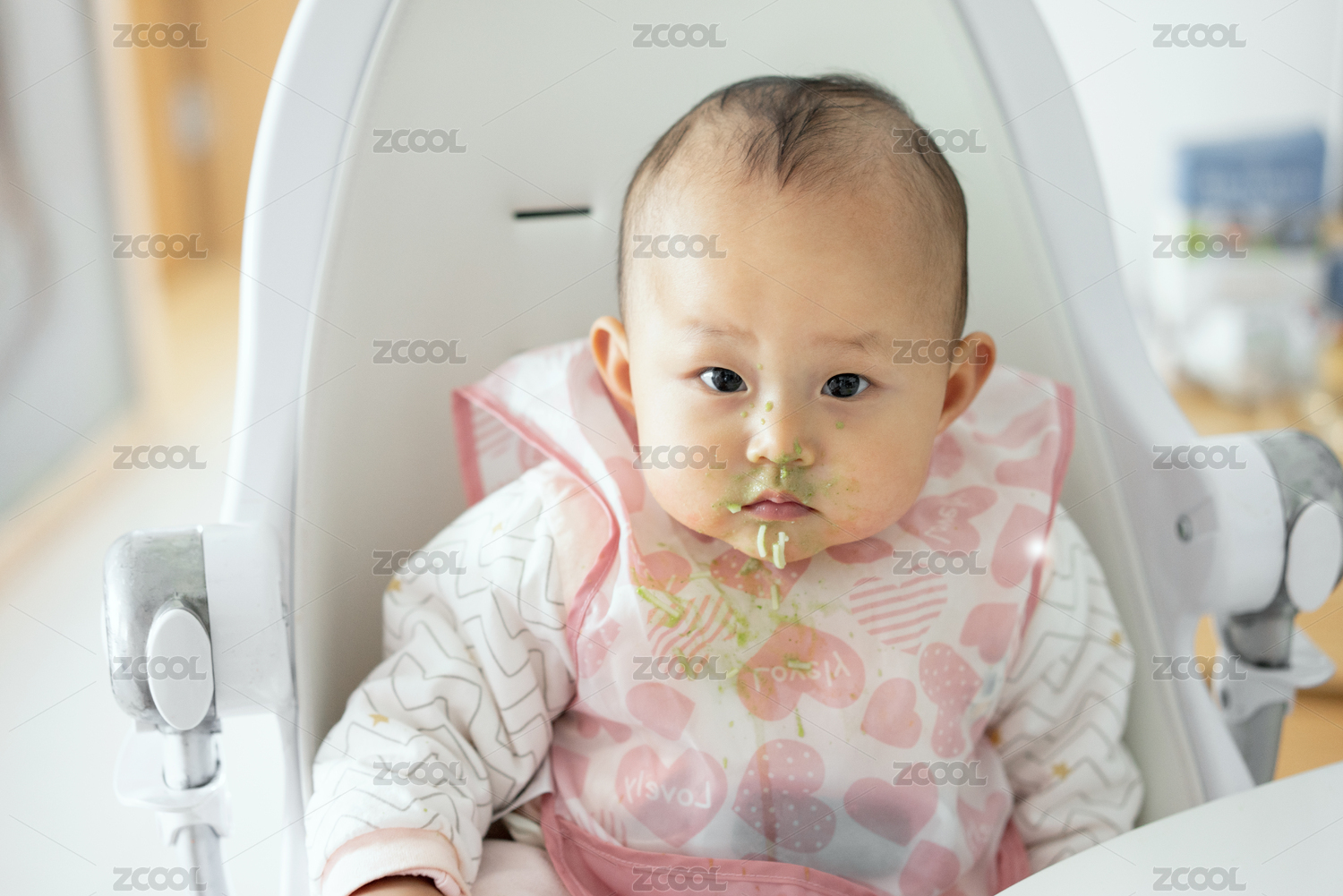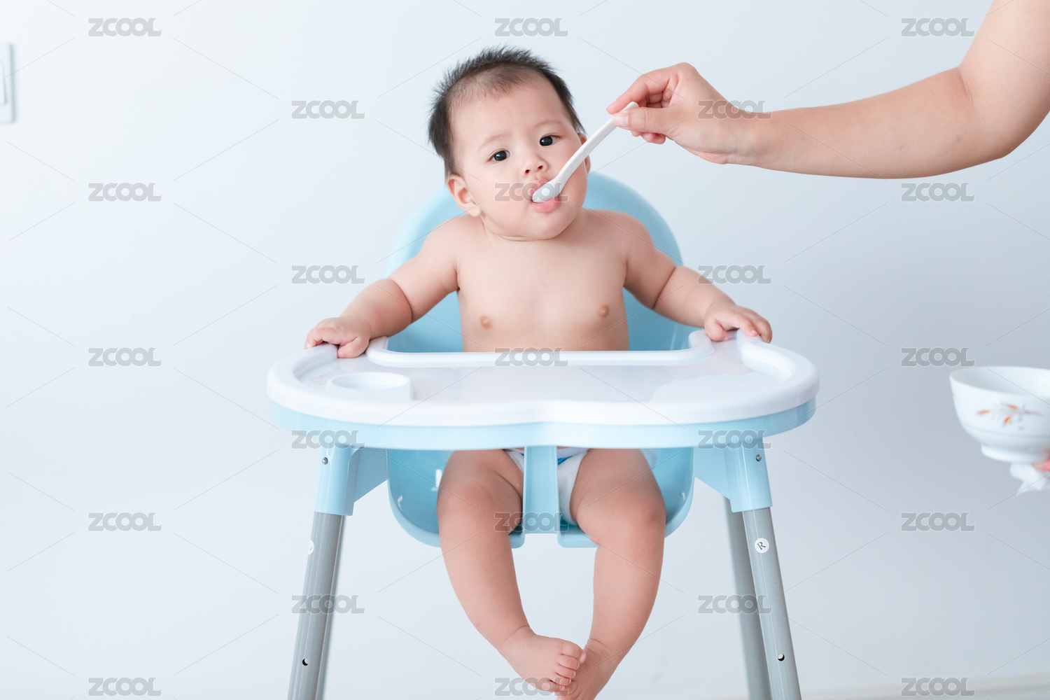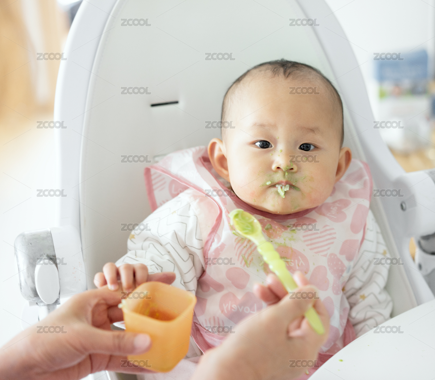 正在吃輔食的8個月嬰兒