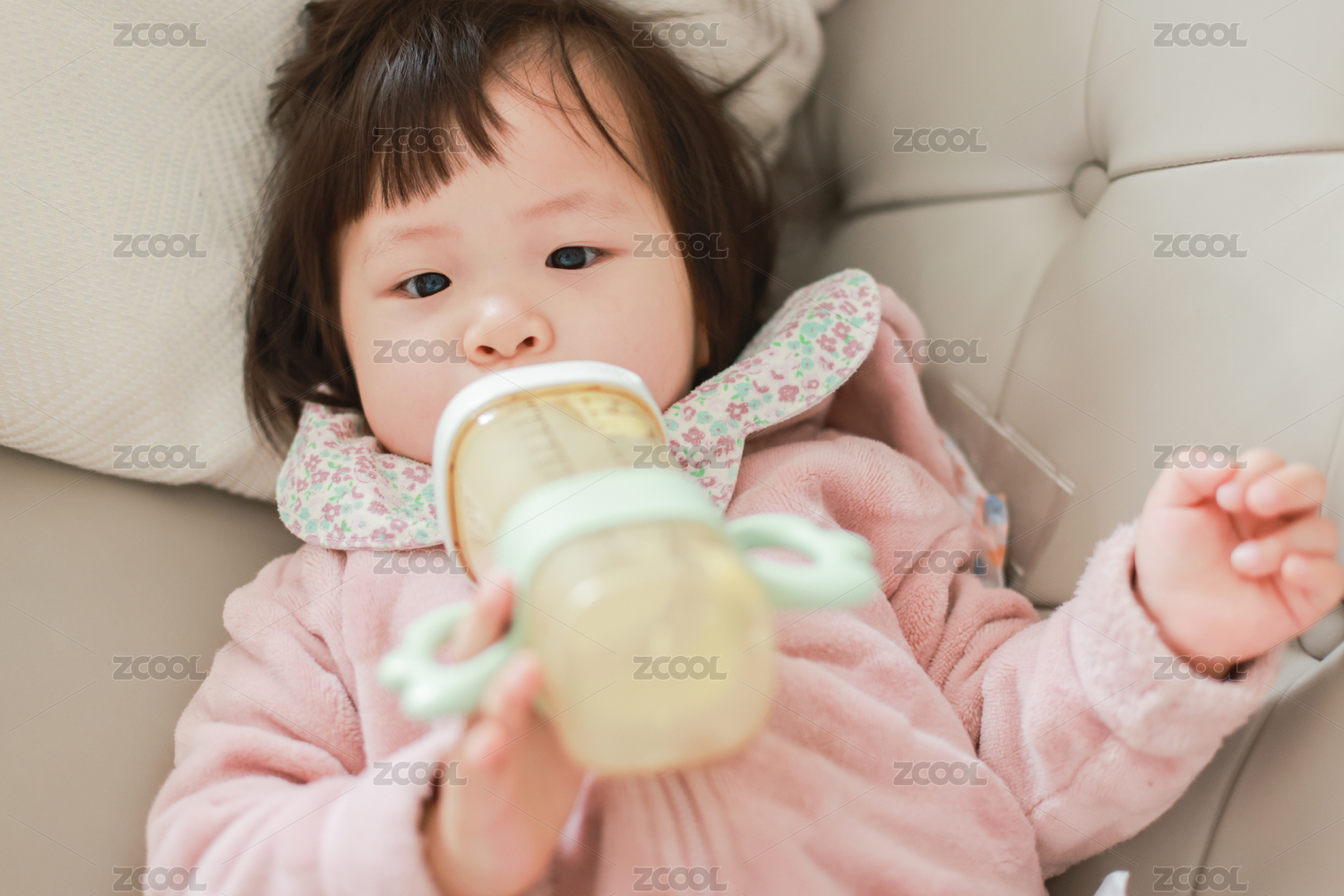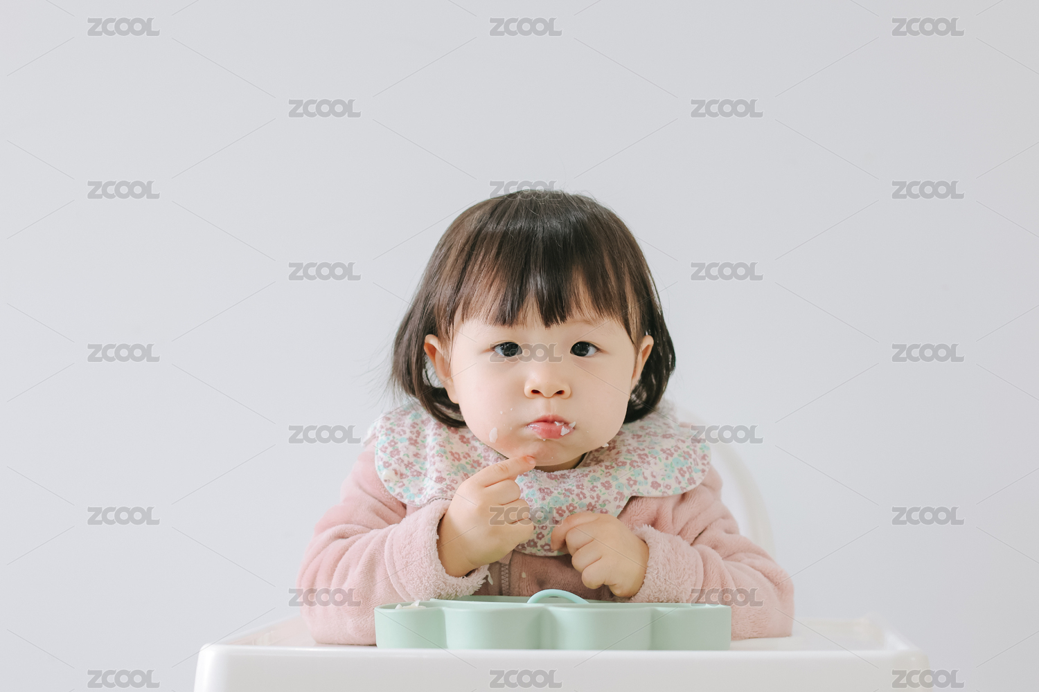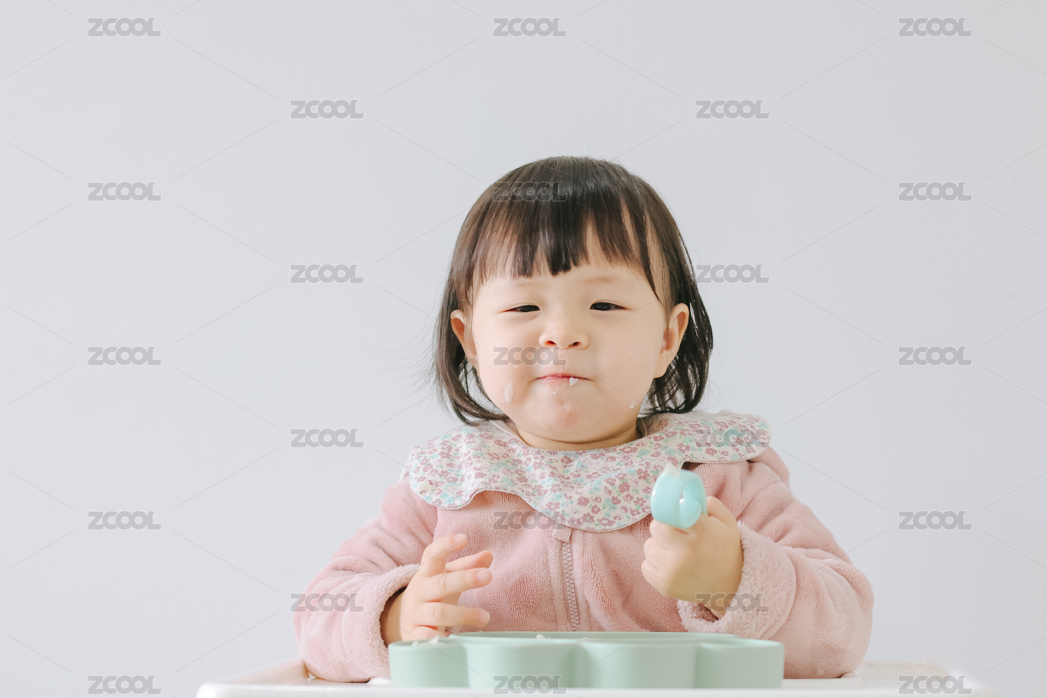 正在吃輔食的8個月嬰兒