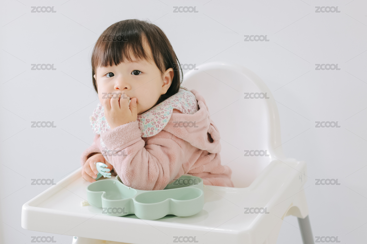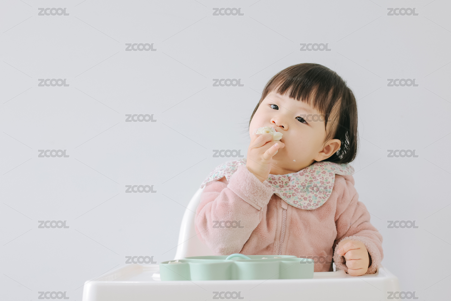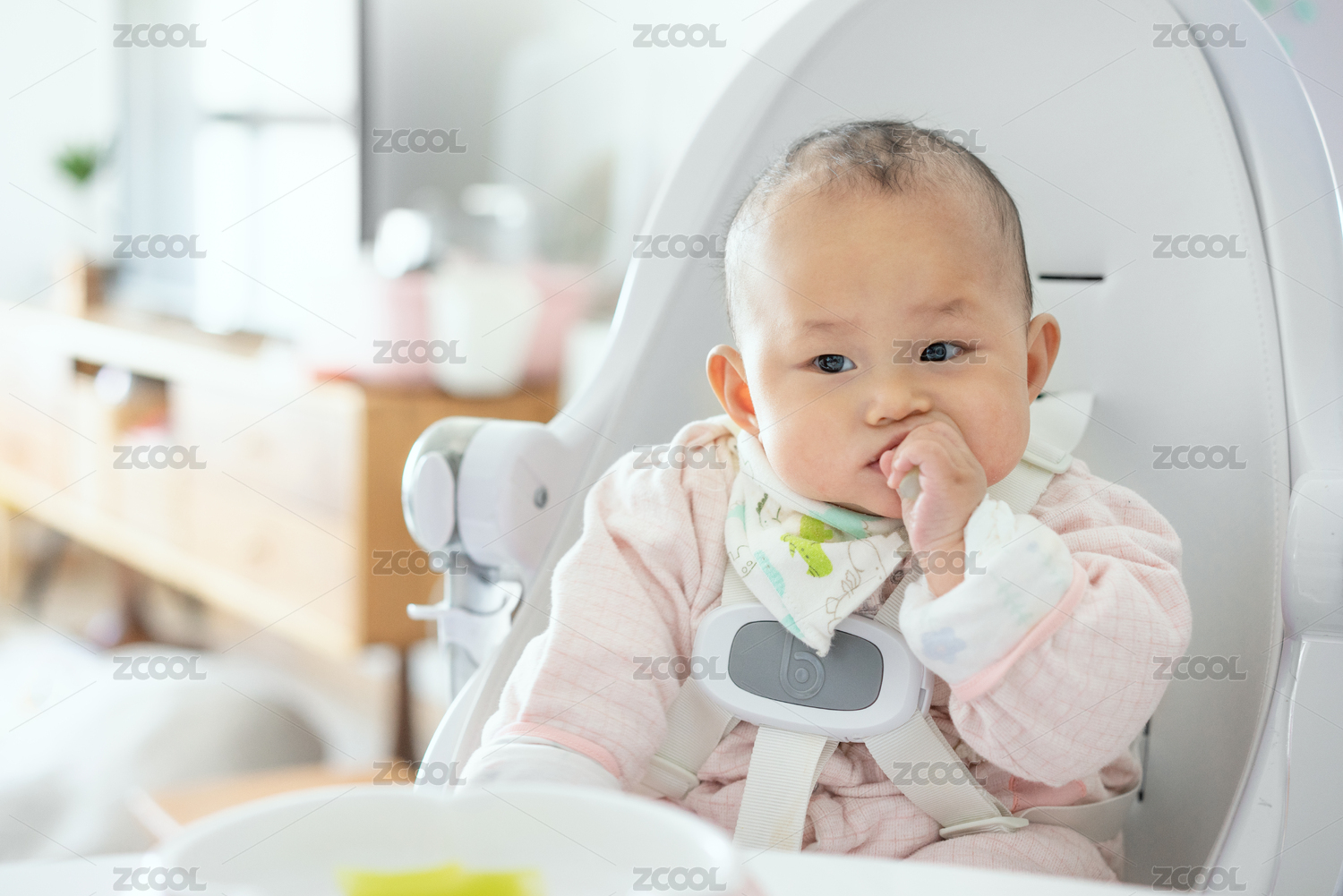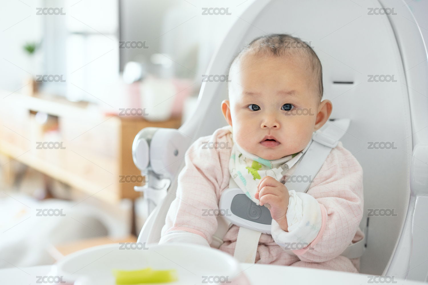 寶寶坐在餐椅上吃輔食