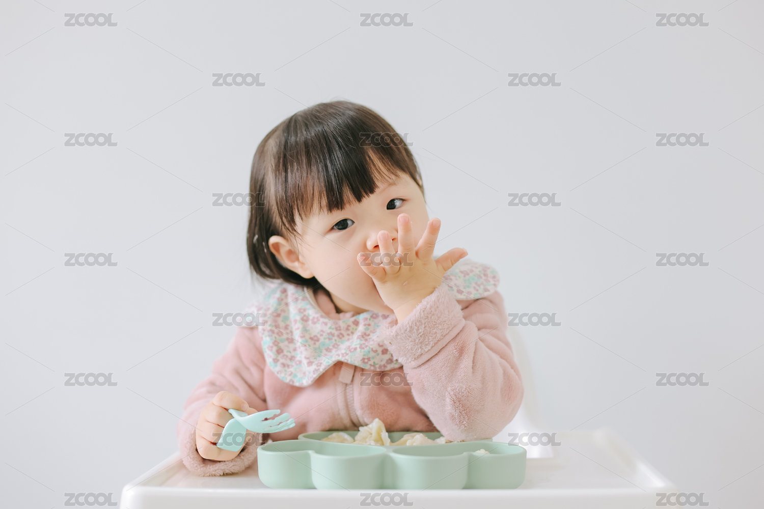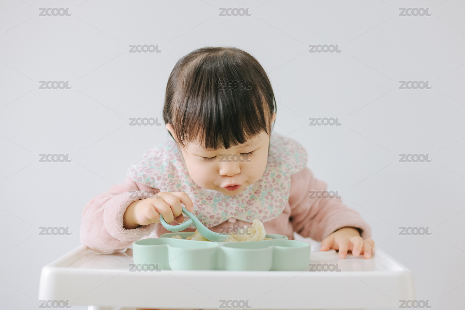 可愛的亞洲寶寶獨自吃輔食