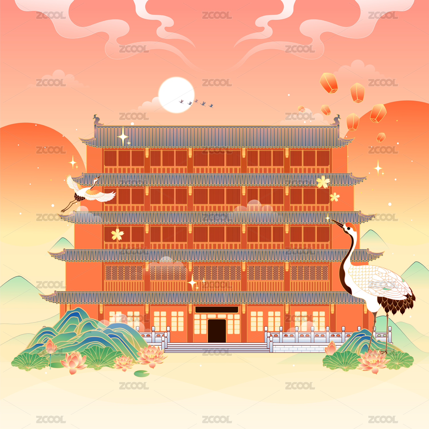 廣州鎮(zhèn)海樓插畫(huà)元素