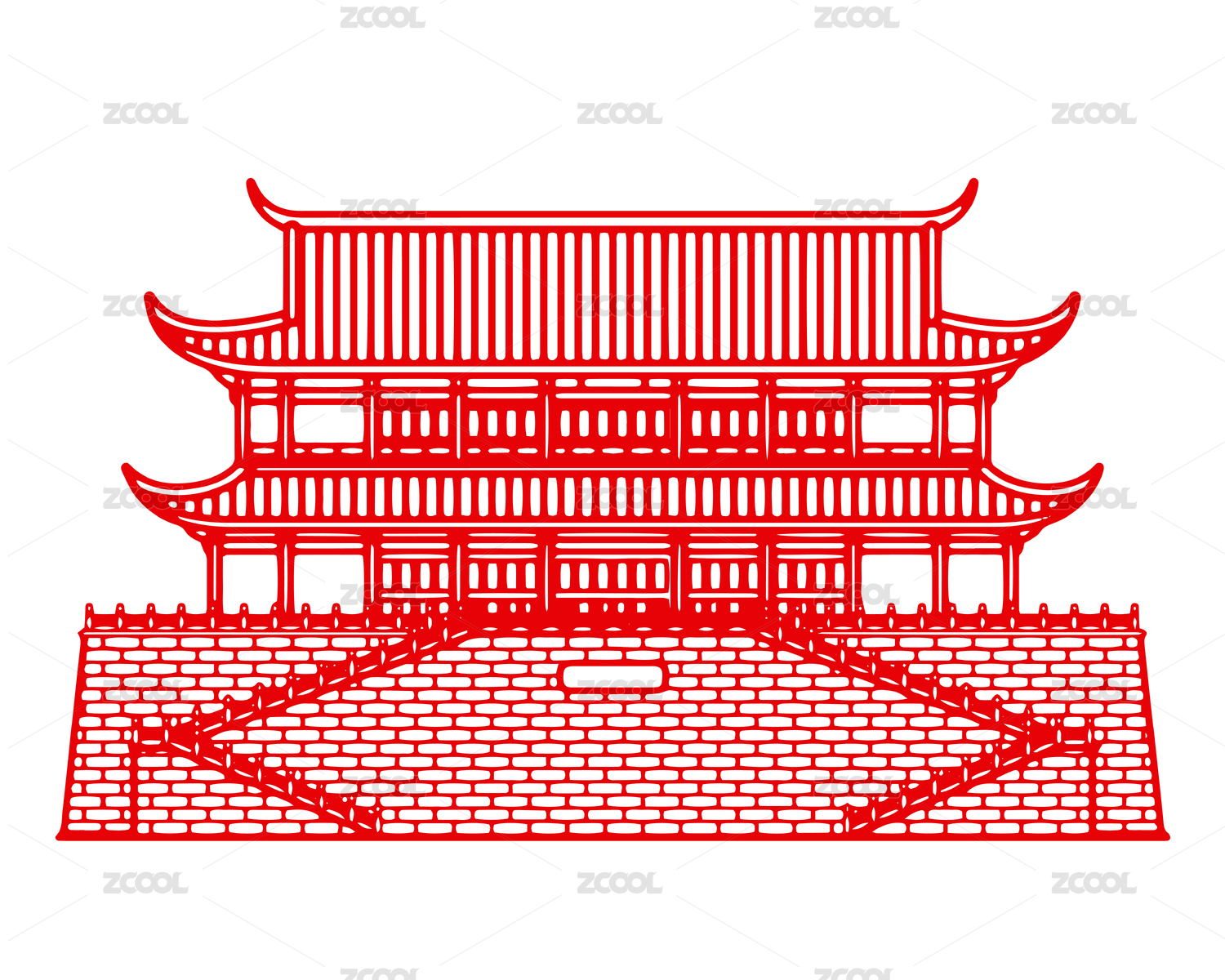 福州鎮(zhèn)海樓歷史建筑國(guó)風(fēng)國(guó)潮白描插畫(huà)