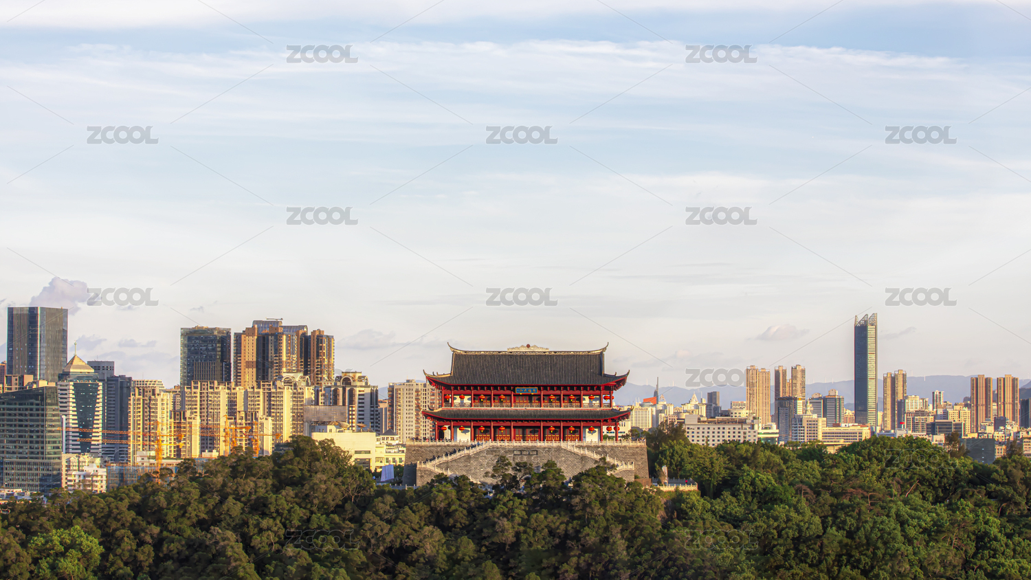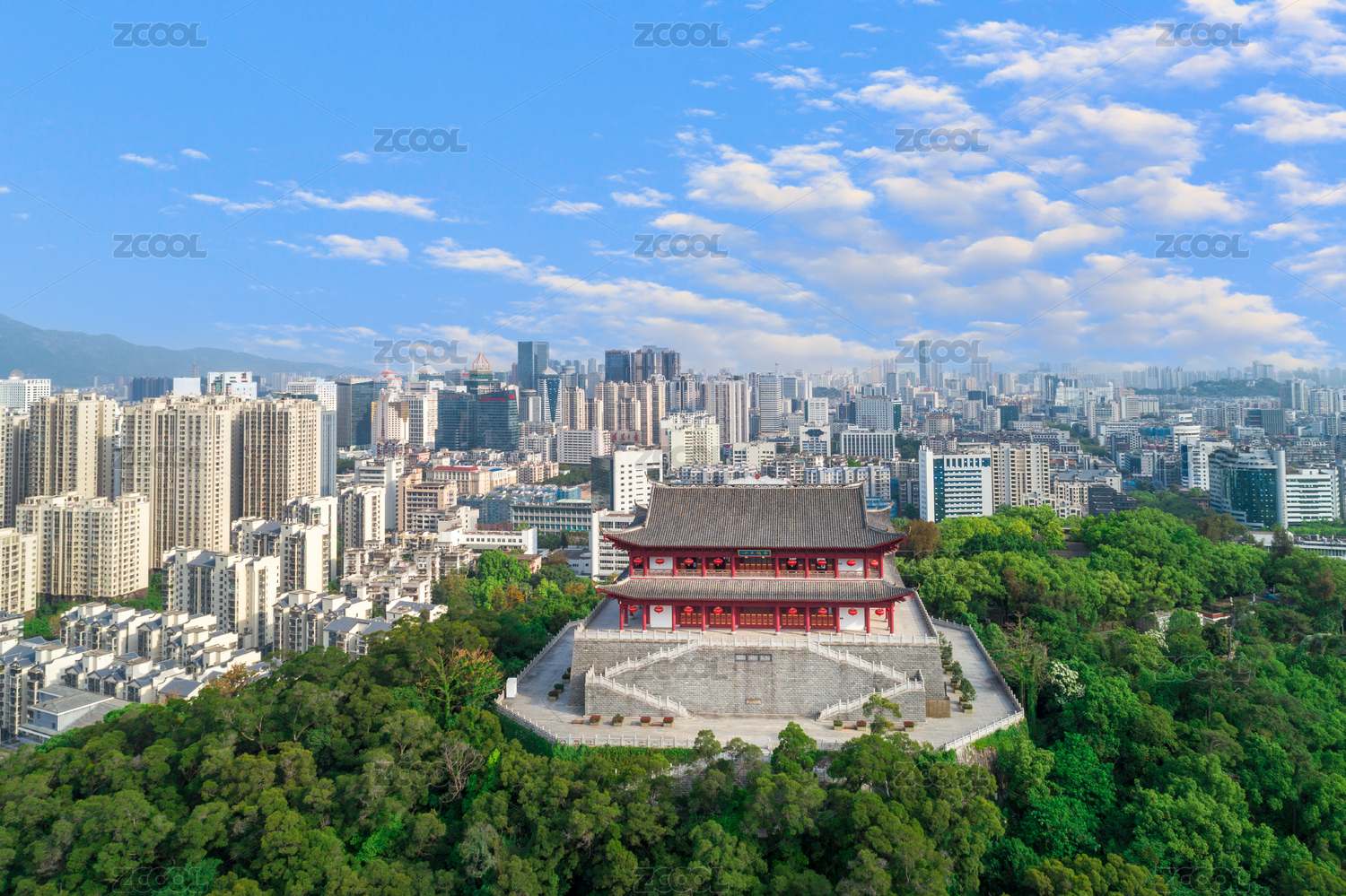 福州鎮(zhèn)海樓山間古建筑與綠樹(shù)