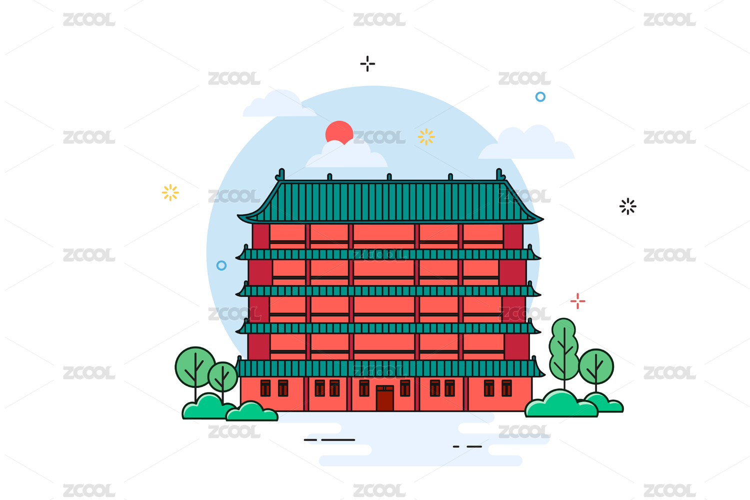 廣州鎮(zhèn)海樓風(fēng)景建筑矢量插畫(huà)