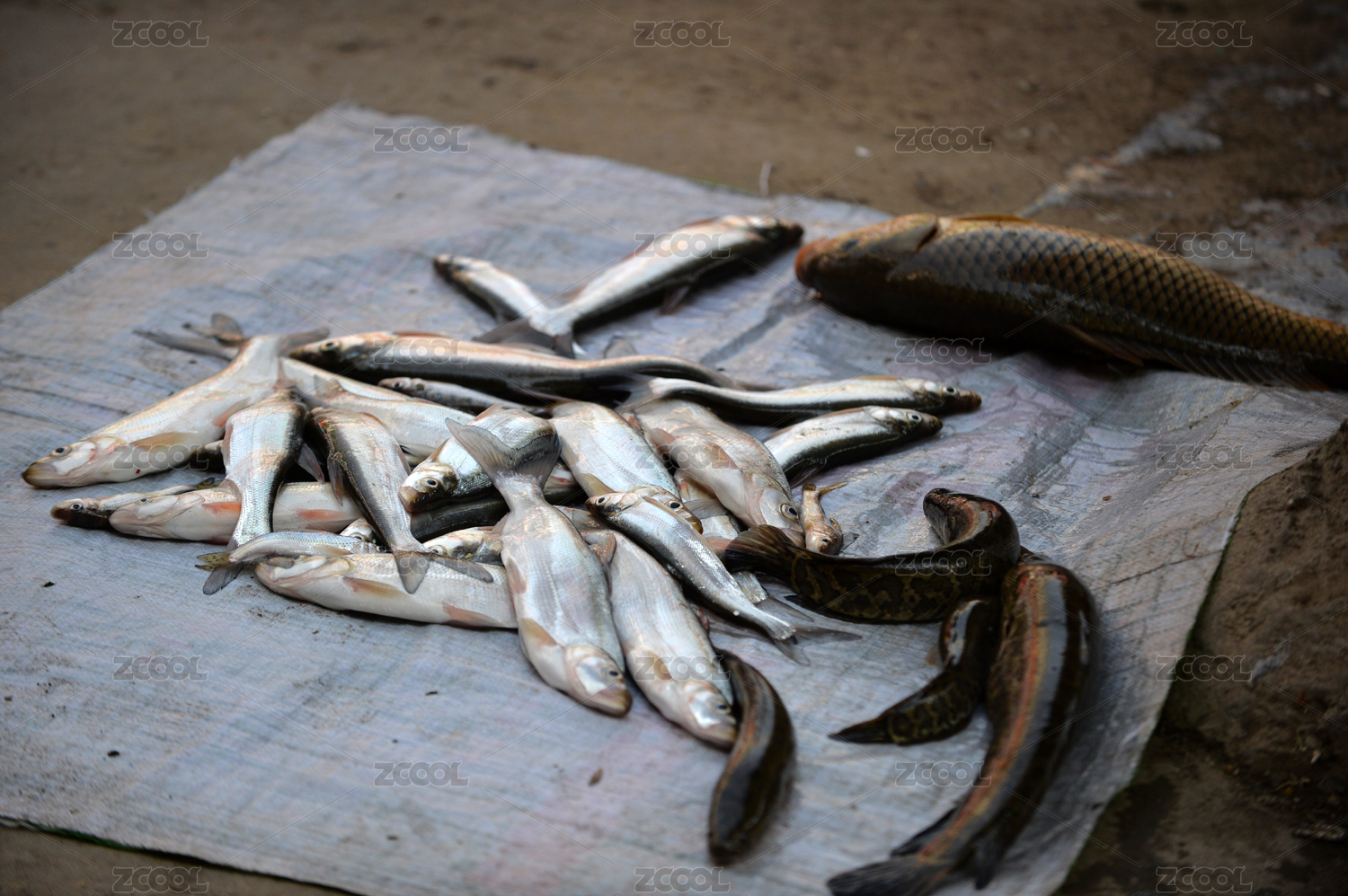 戶外柴火鐵鍋燉煮的剛捕撈的野生魚