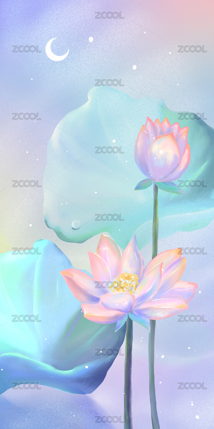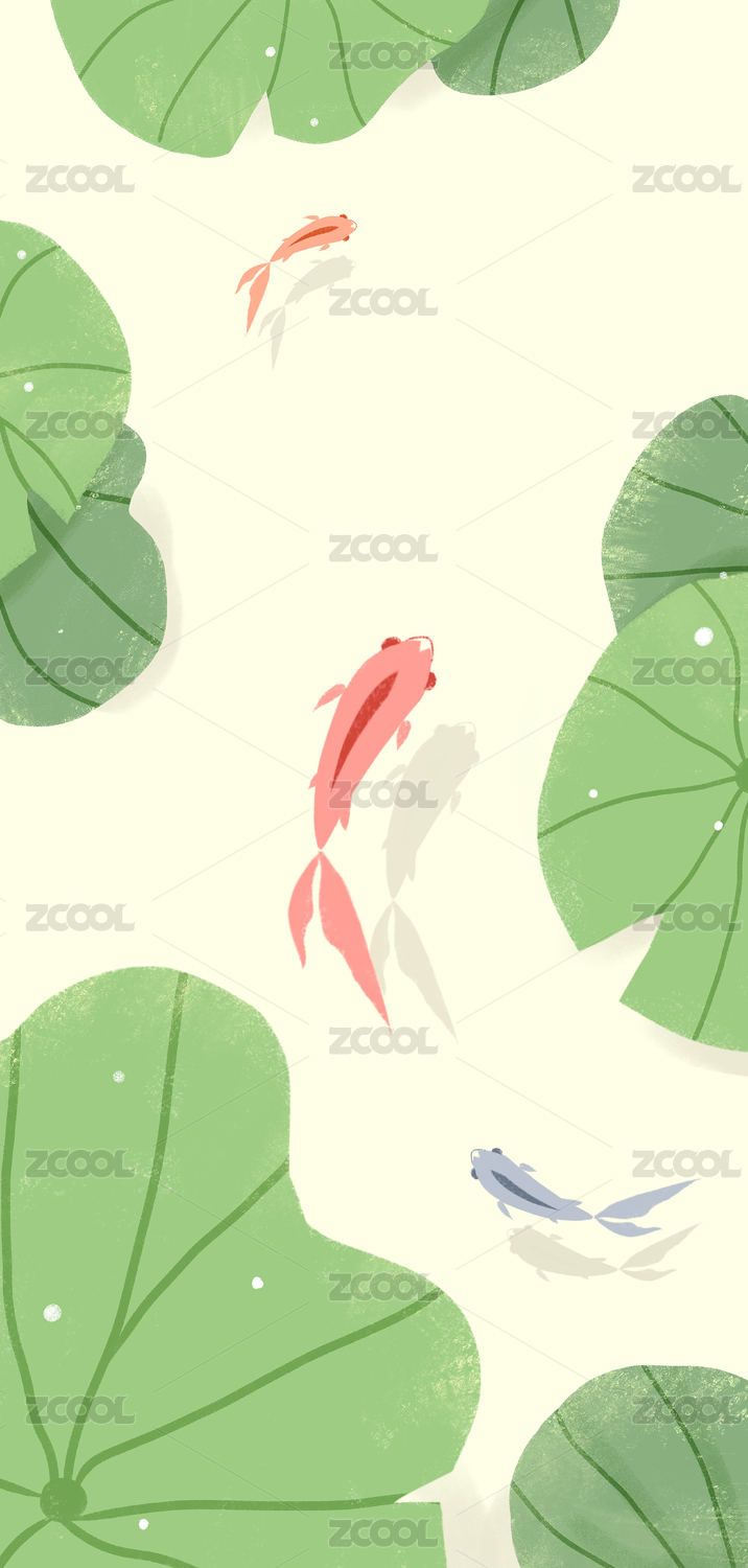 小魚(yú)荷葉手機(jī)壁紙插畫(huà)