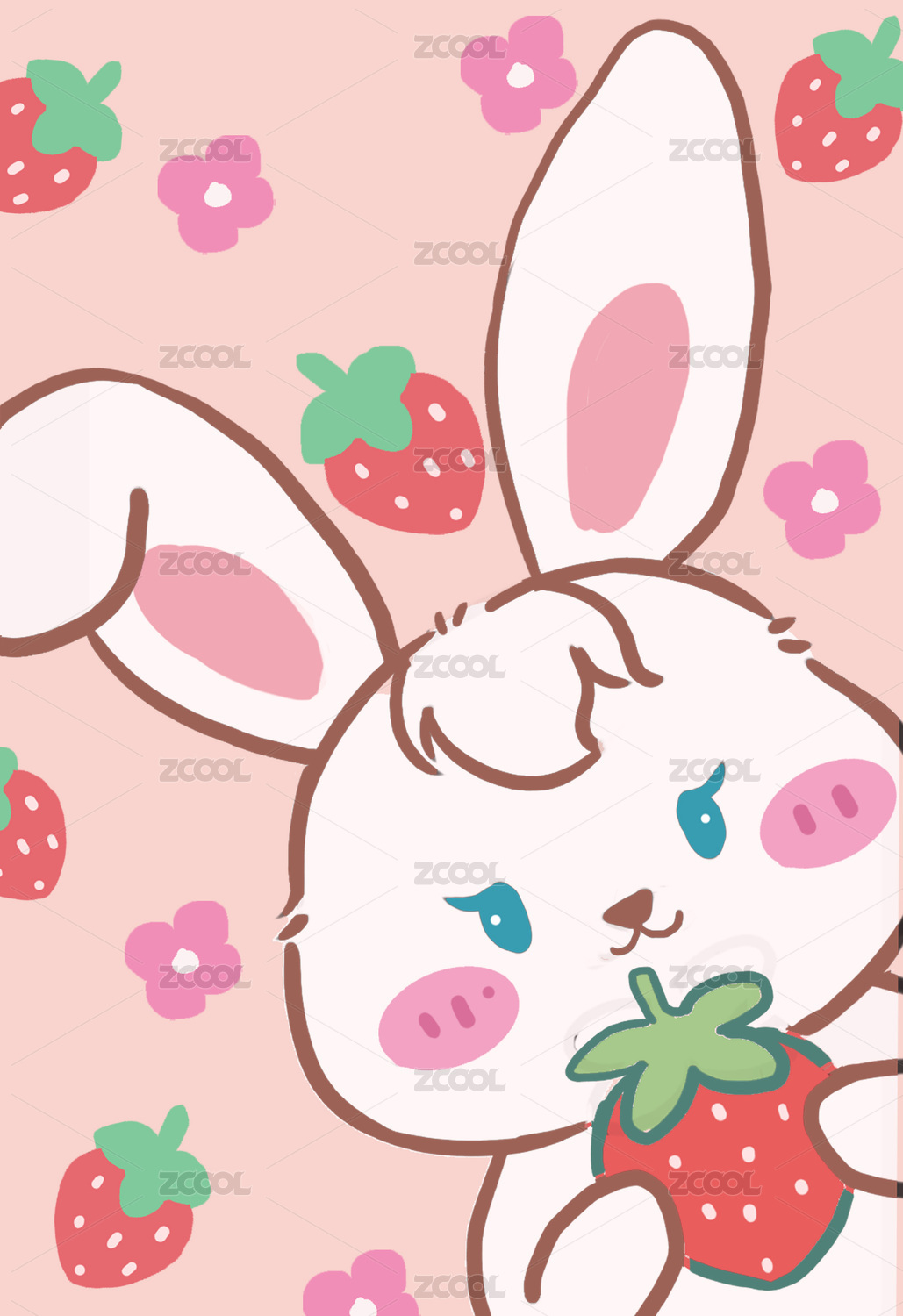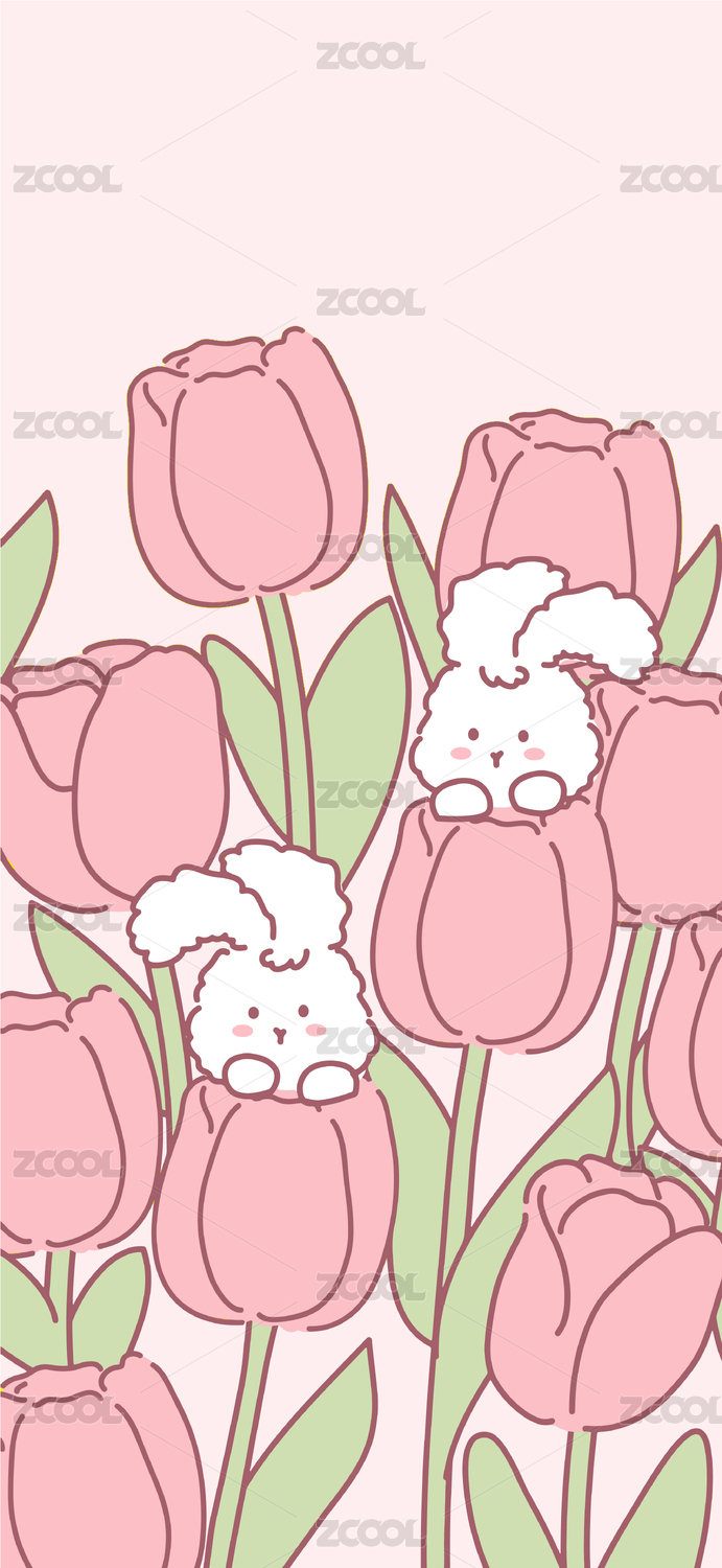 粉色郁金香小兔子手機(jī)壁紙插畫(huà)卡通