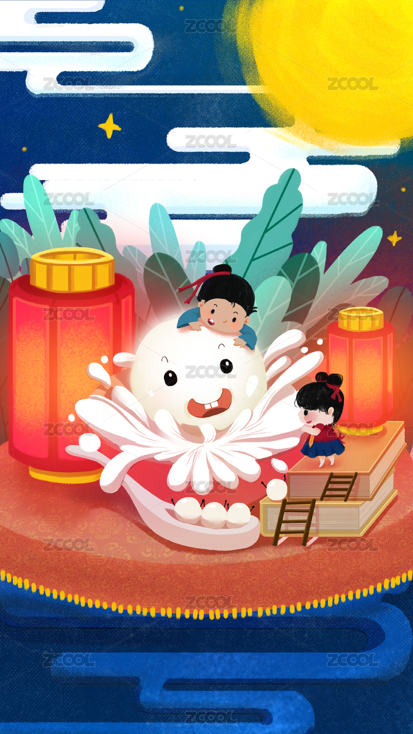 元宵節(jié)手機(jī)壁紙燈籠元宵漢服小孩
