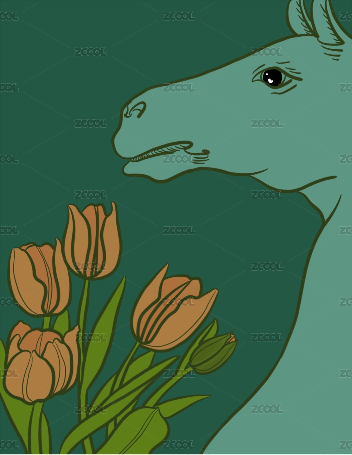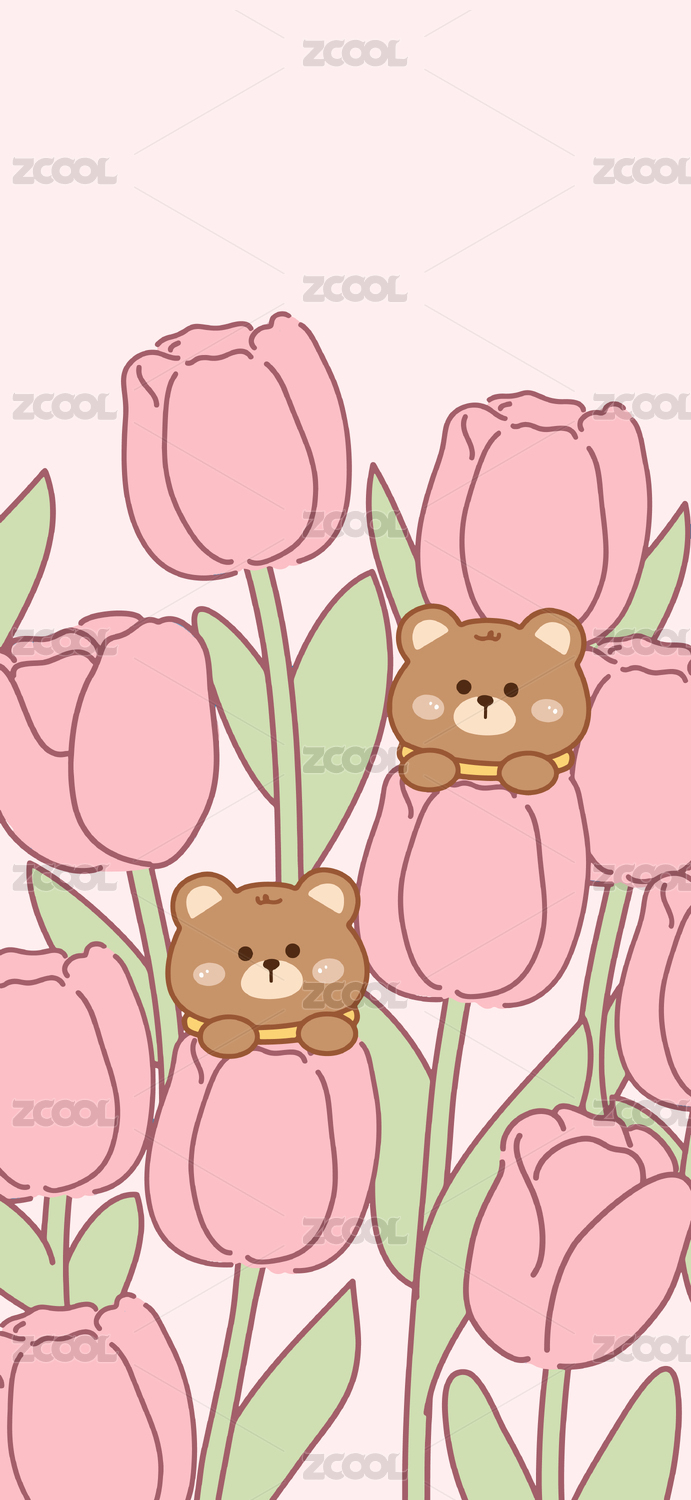 郁金香花朵可愛(ài)卡通小熊手機(jī)壁紙插畫(huà)