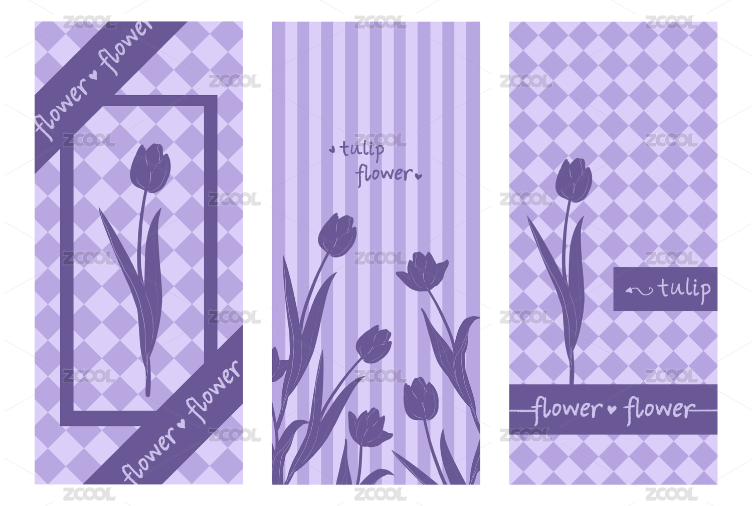 紫色唯美郁金香條紋格子手機(jī)壁紙
