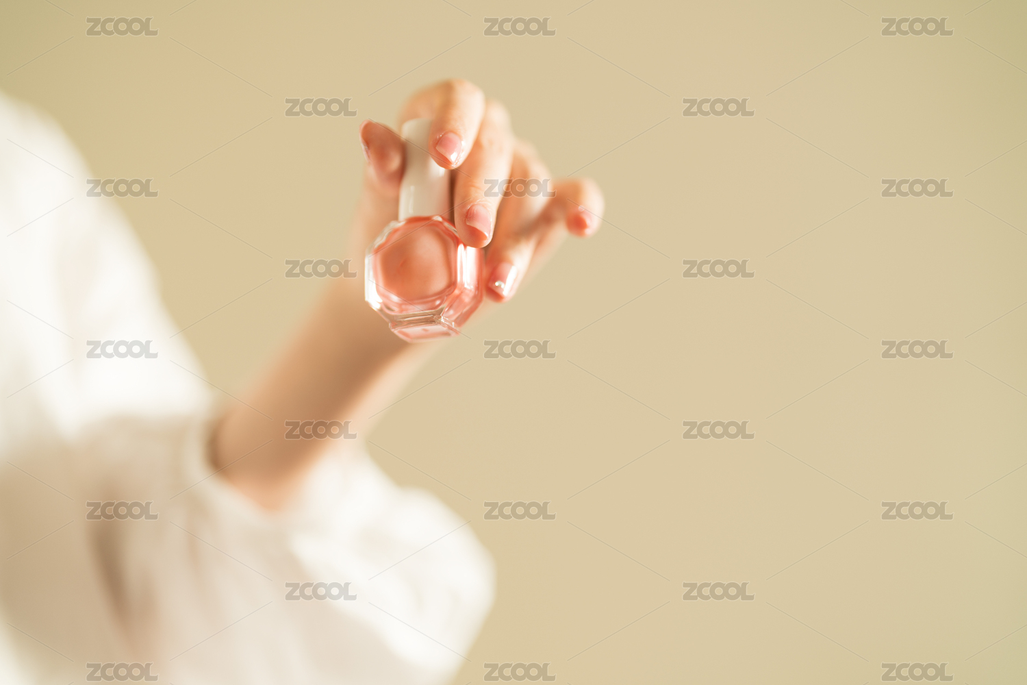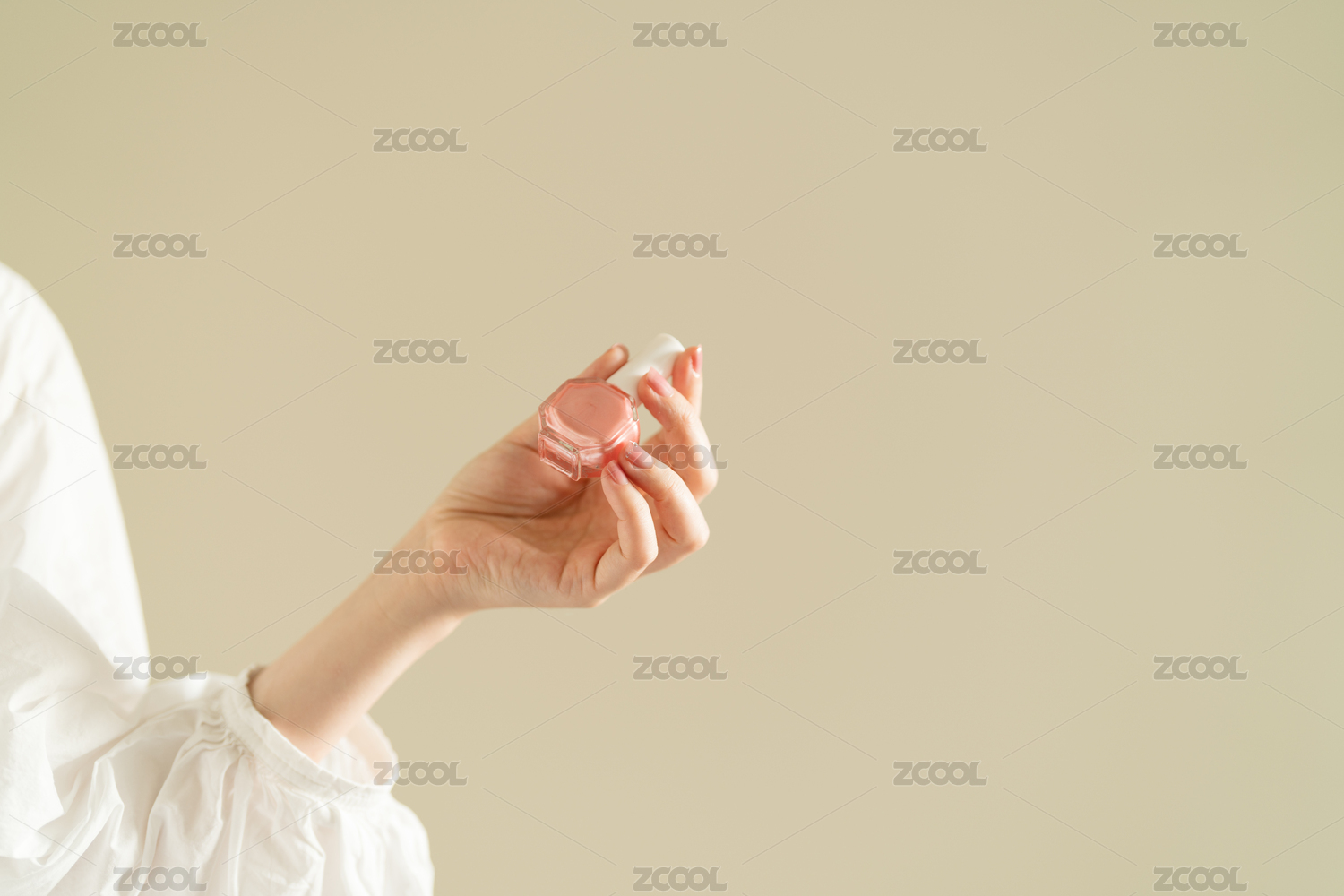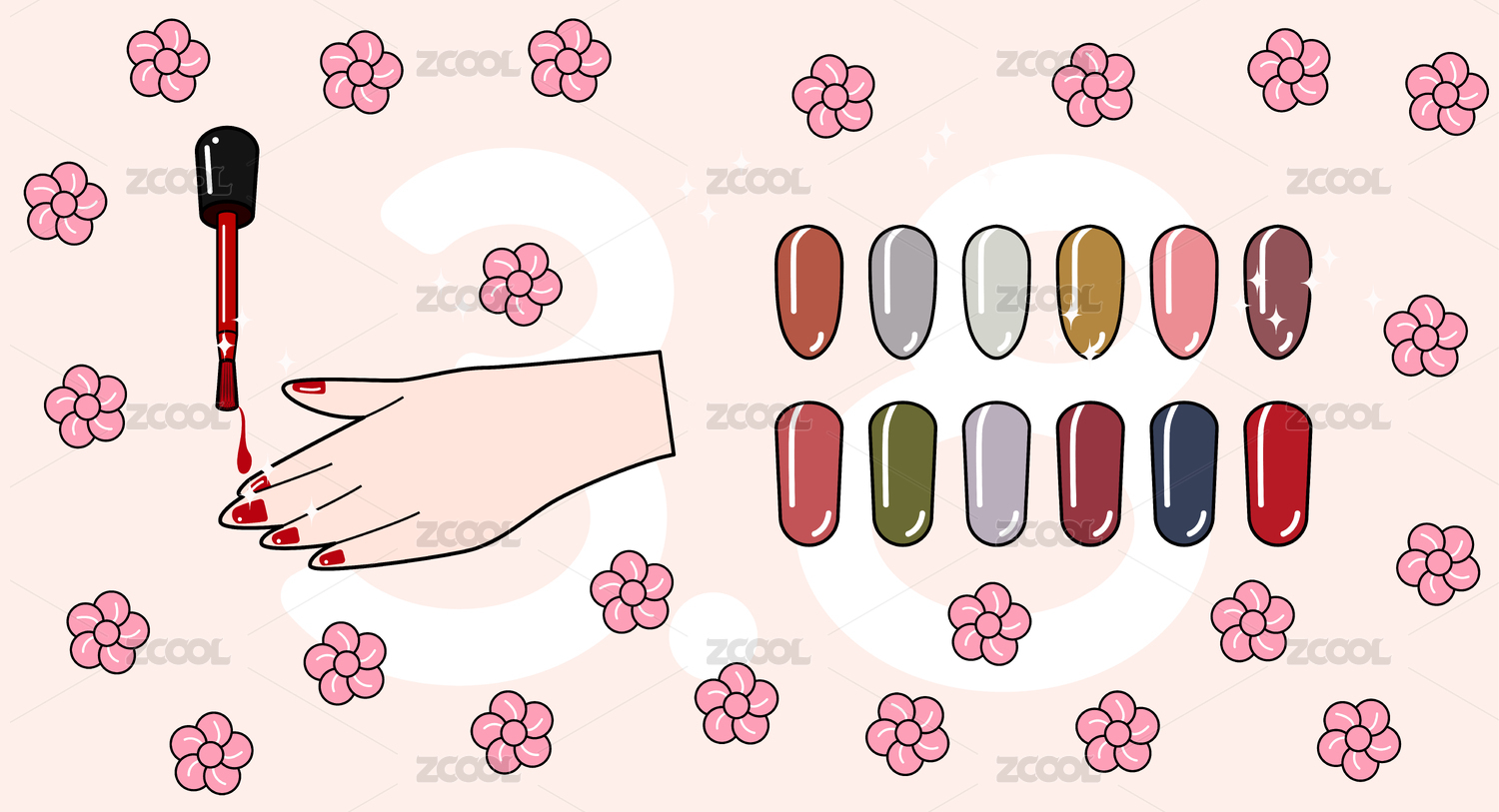 在白嫩的手上涂抹五顏六色的指甲油插畫