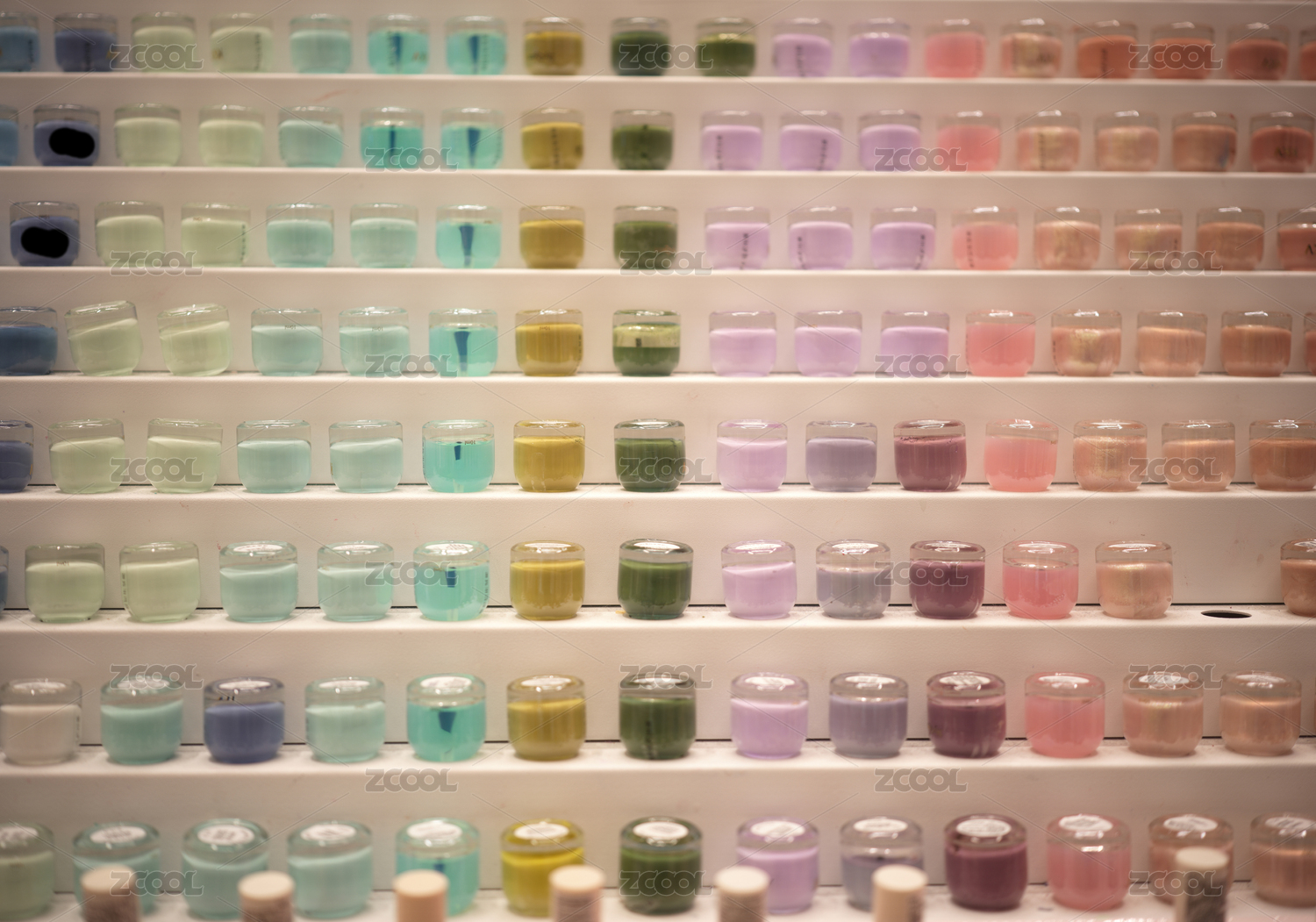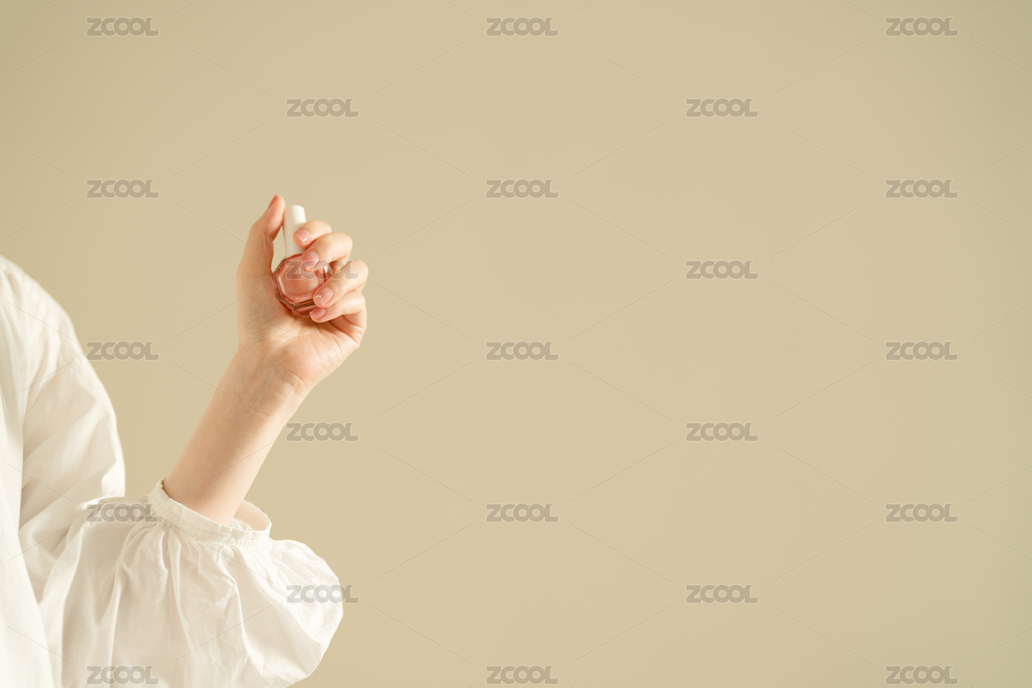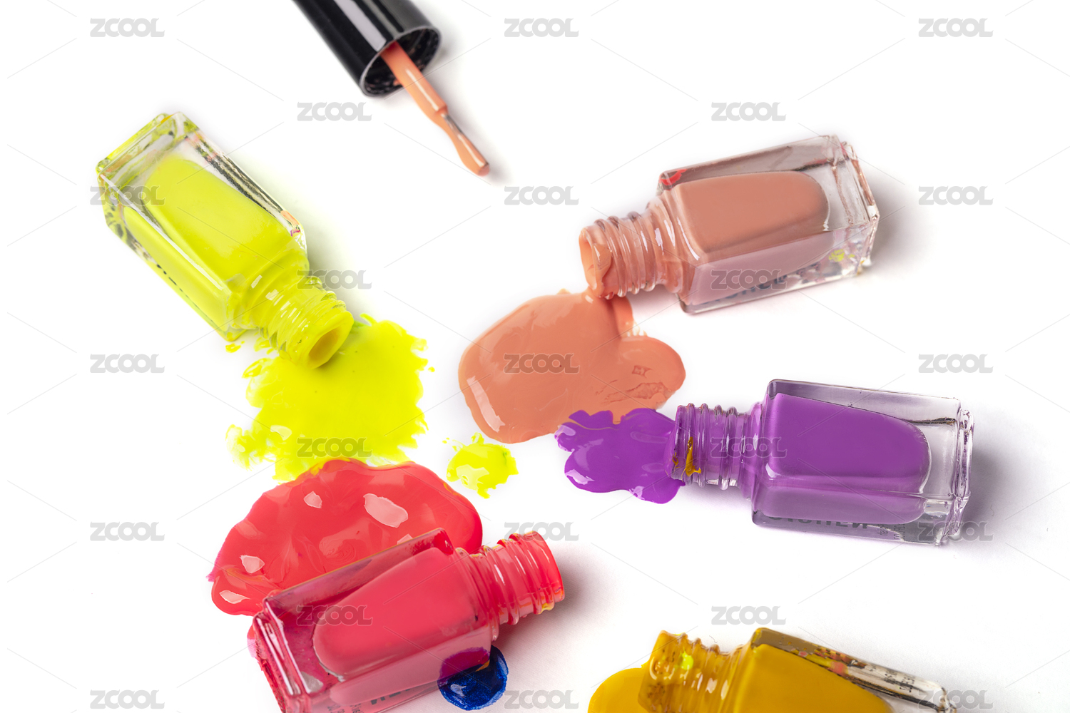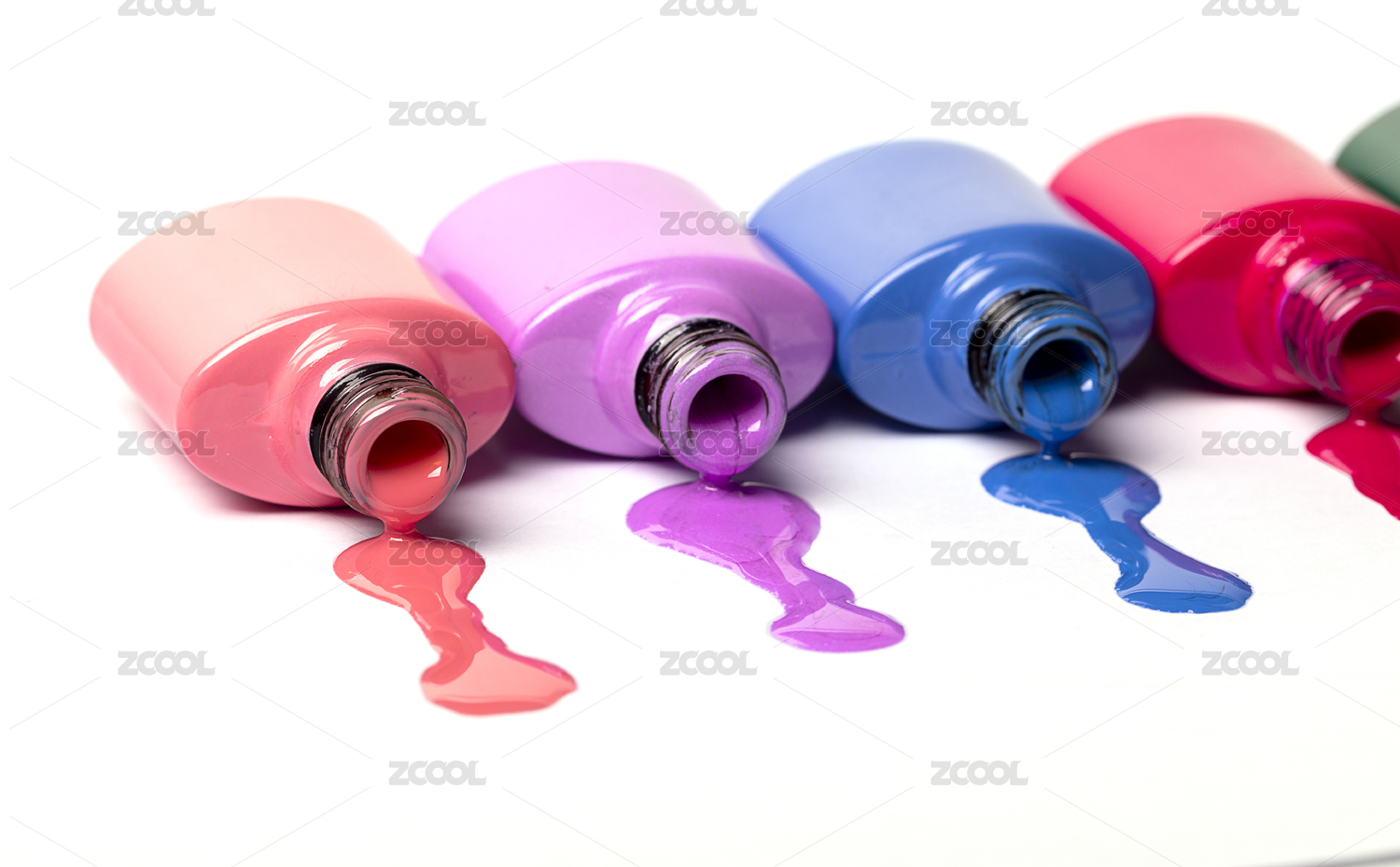 在白嫩的手上涂抹五顏六色的指甲油插畫