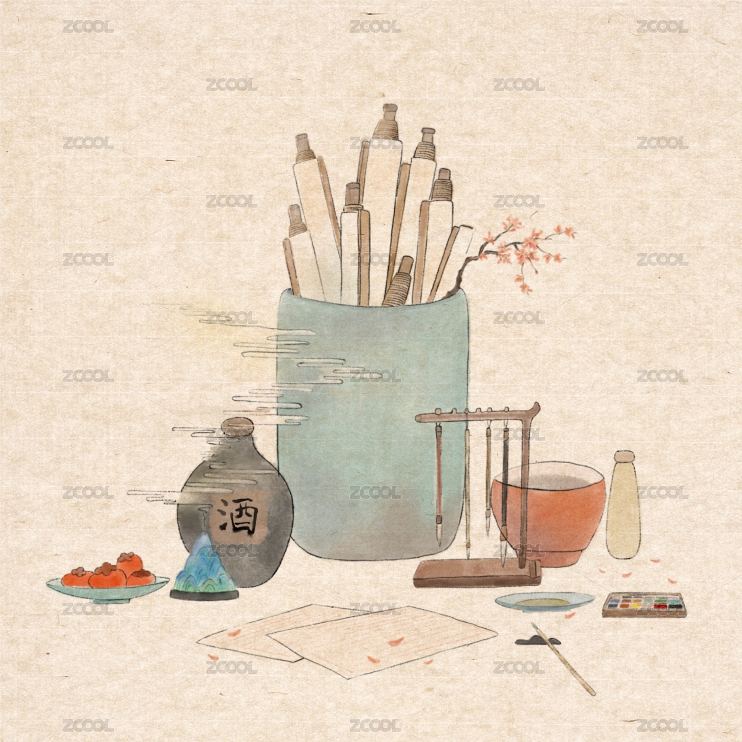 水墨古風(fēng)琴棋歌舞書畫花朵樂器