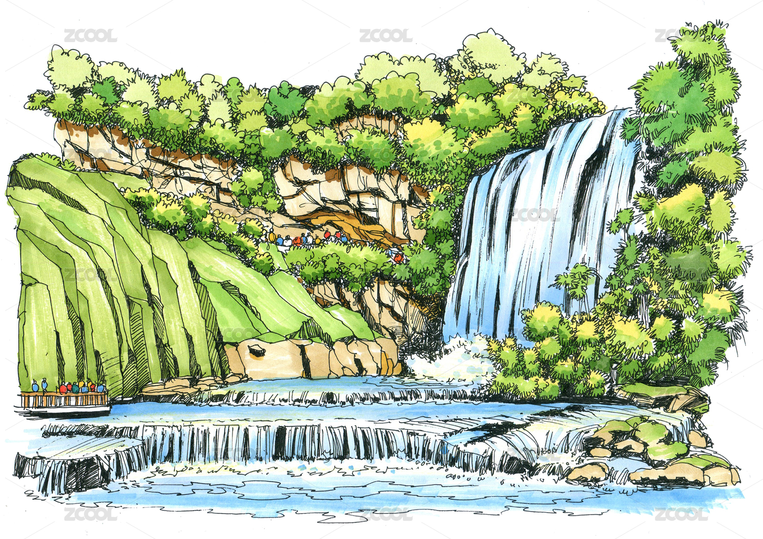 簡約現(xiàn)代戶外水景設(shè)計(jì)石子小徑與流水