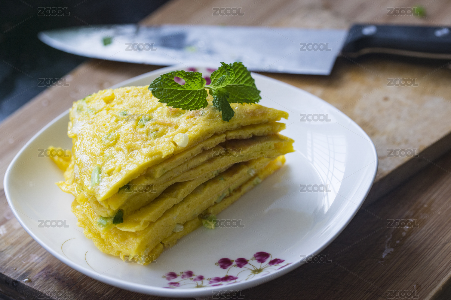 案板上放置的一盤切成三角形的自制雞蛋餅