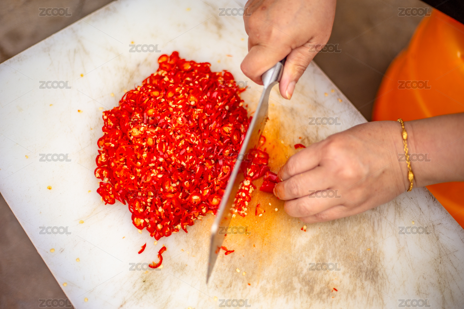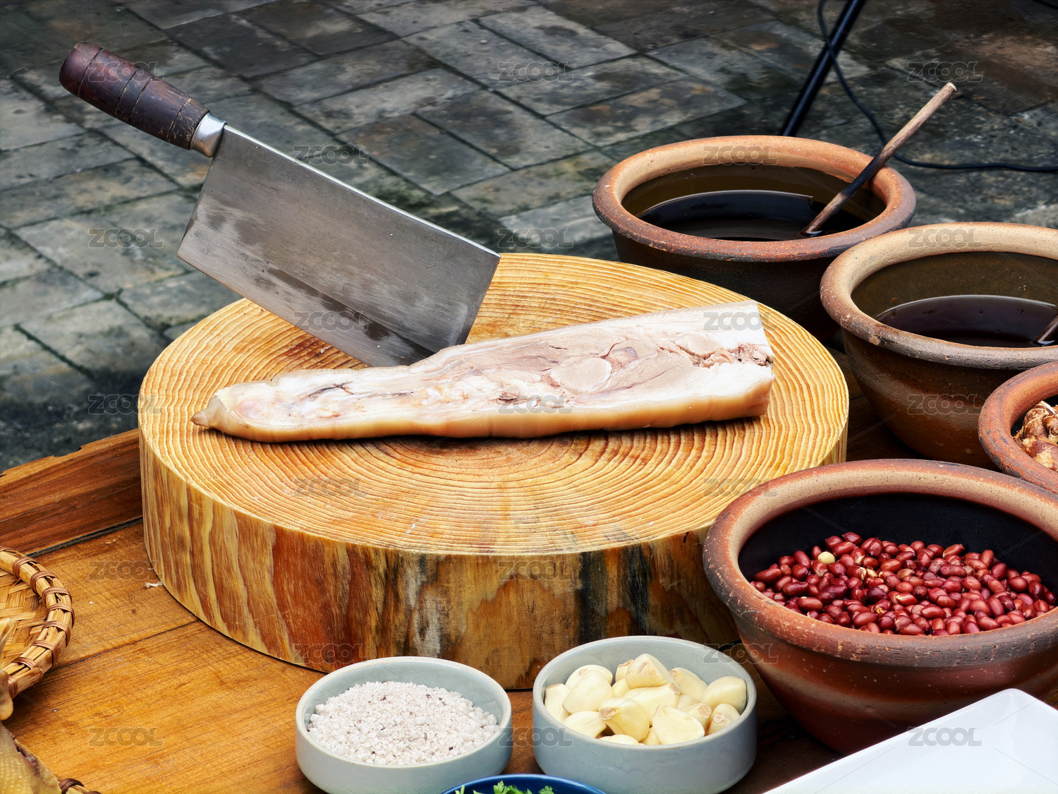 中國(guó)廣西博白白切菜廚房的案板上的白切豬手
