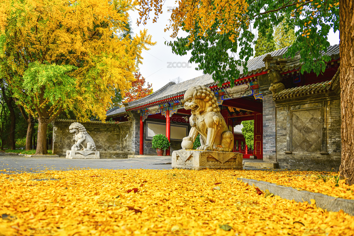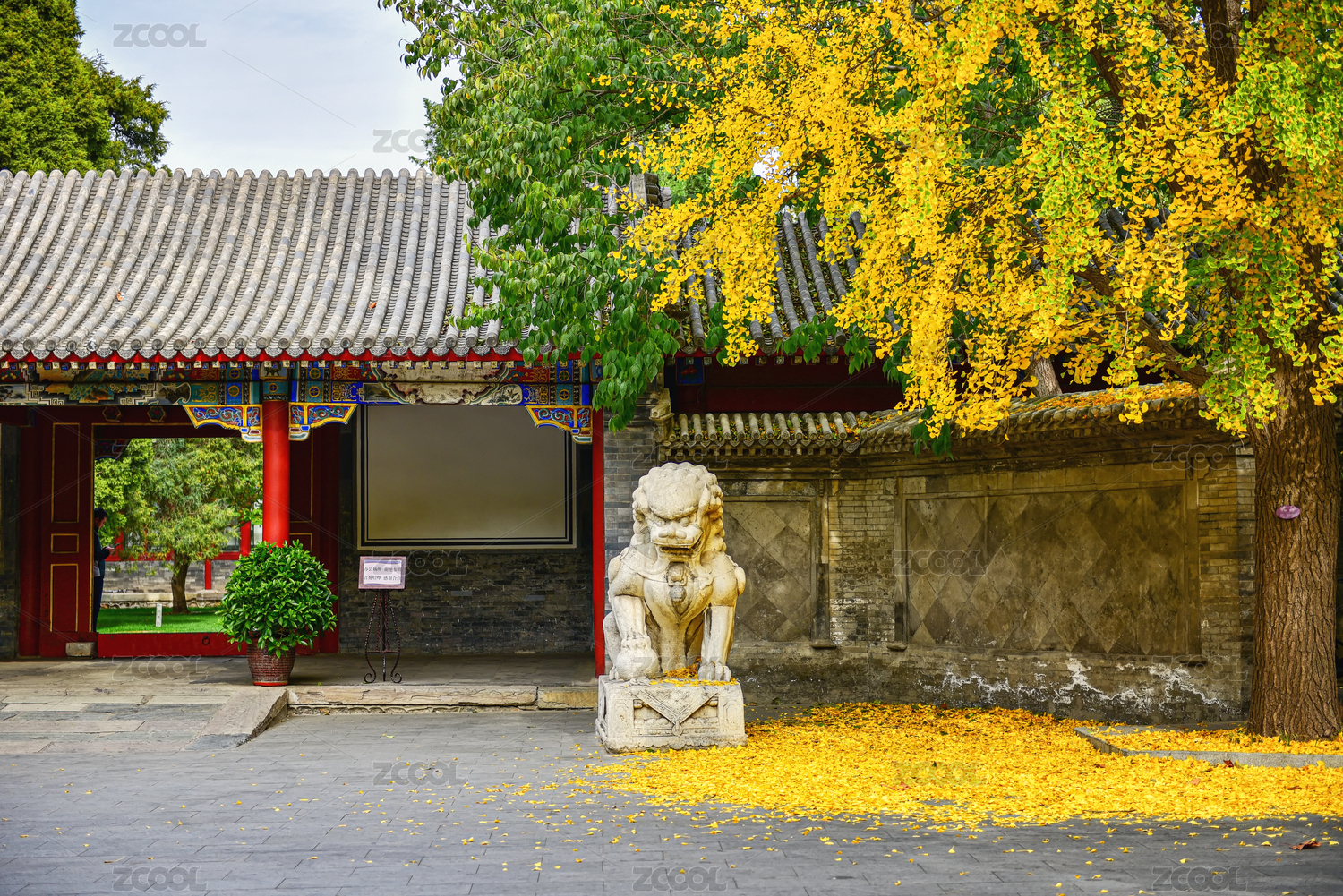 工字廳石獅子銀杏落葉風(fēng)光