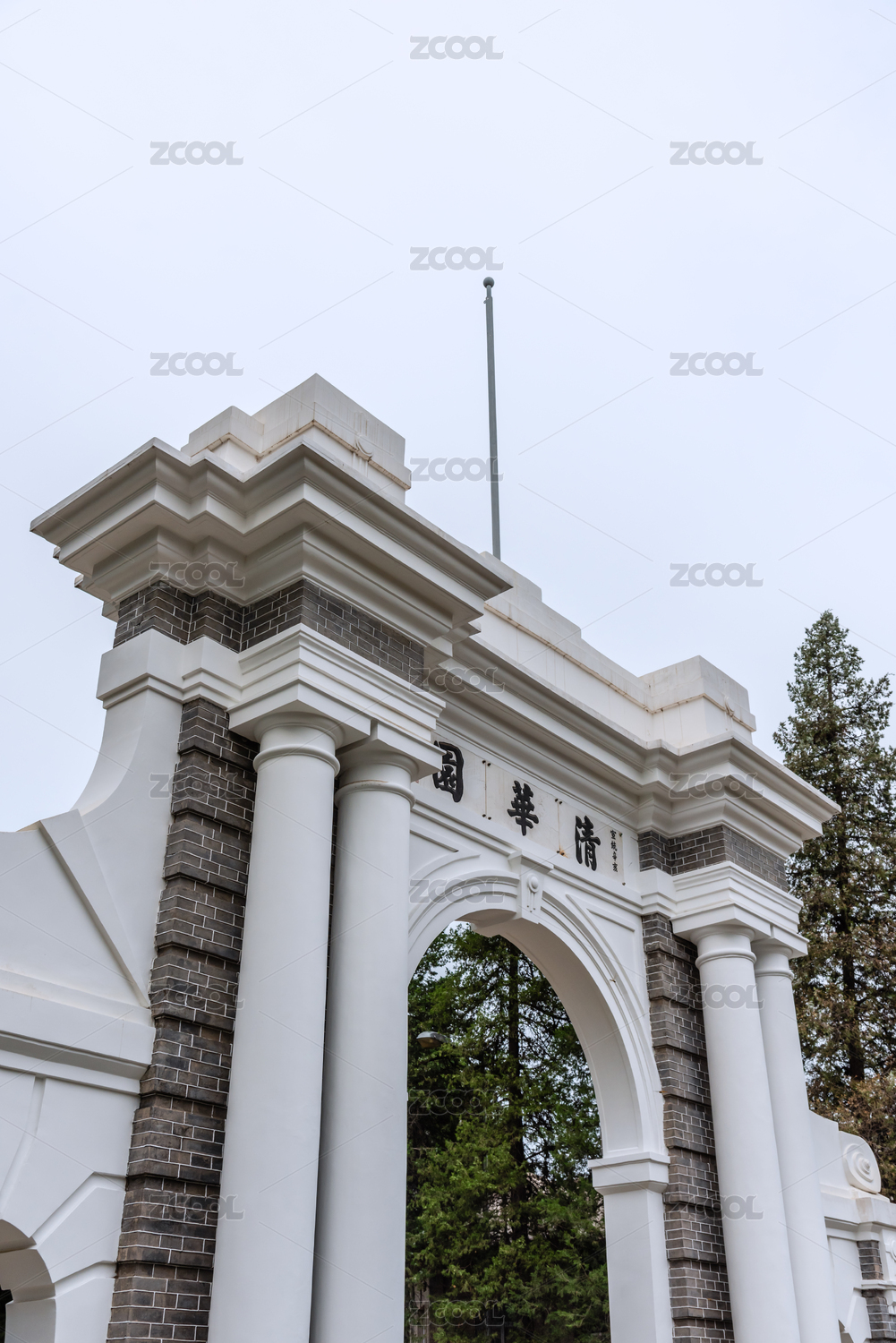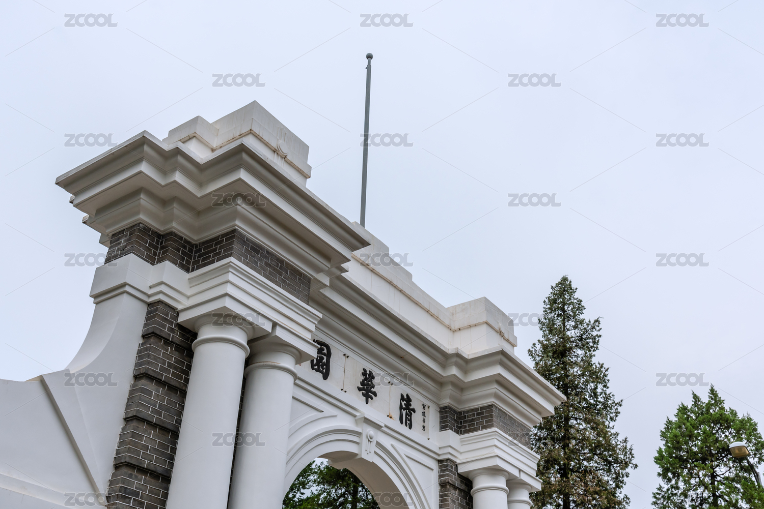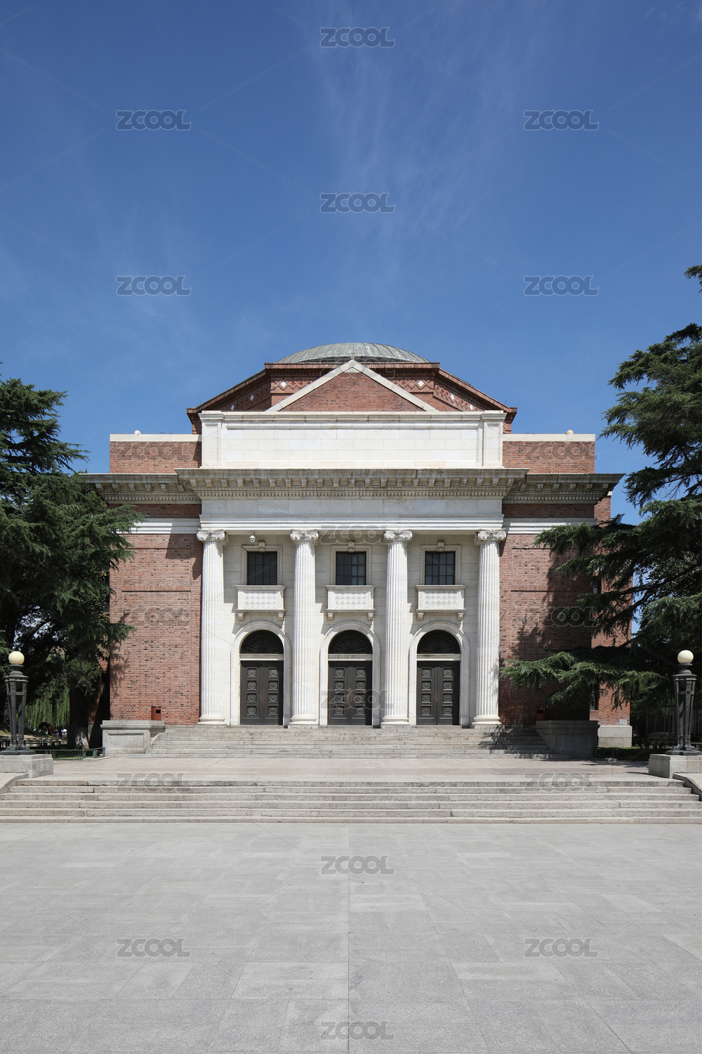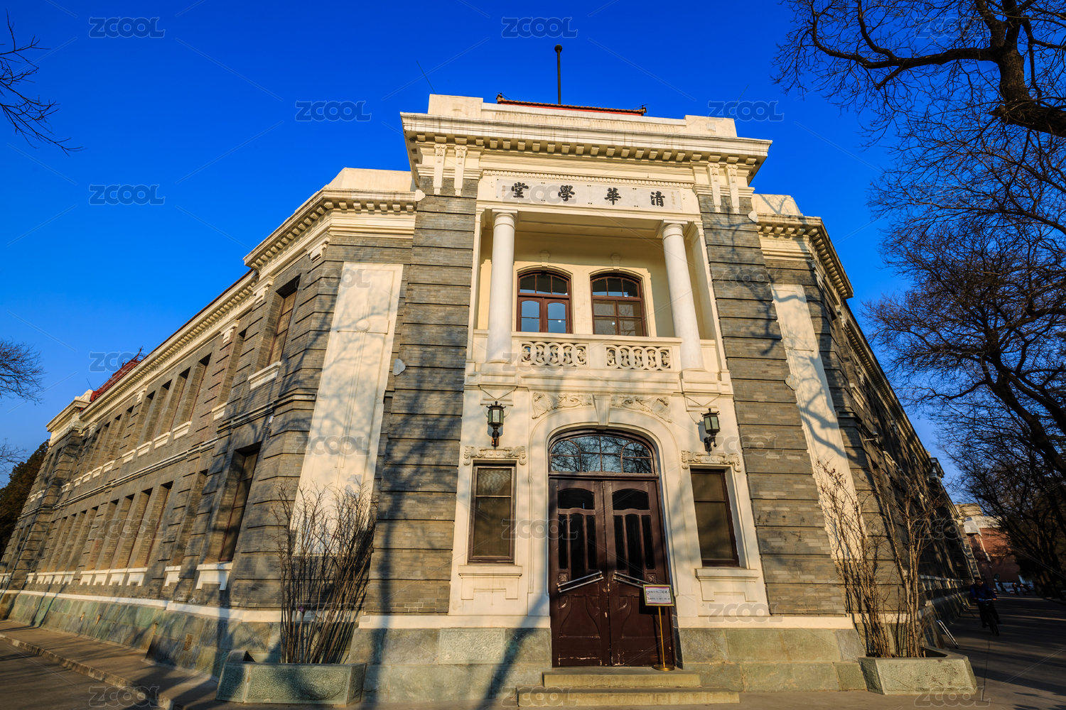 夏天的藍天下,北京清華大學大禮堂和綠草坪