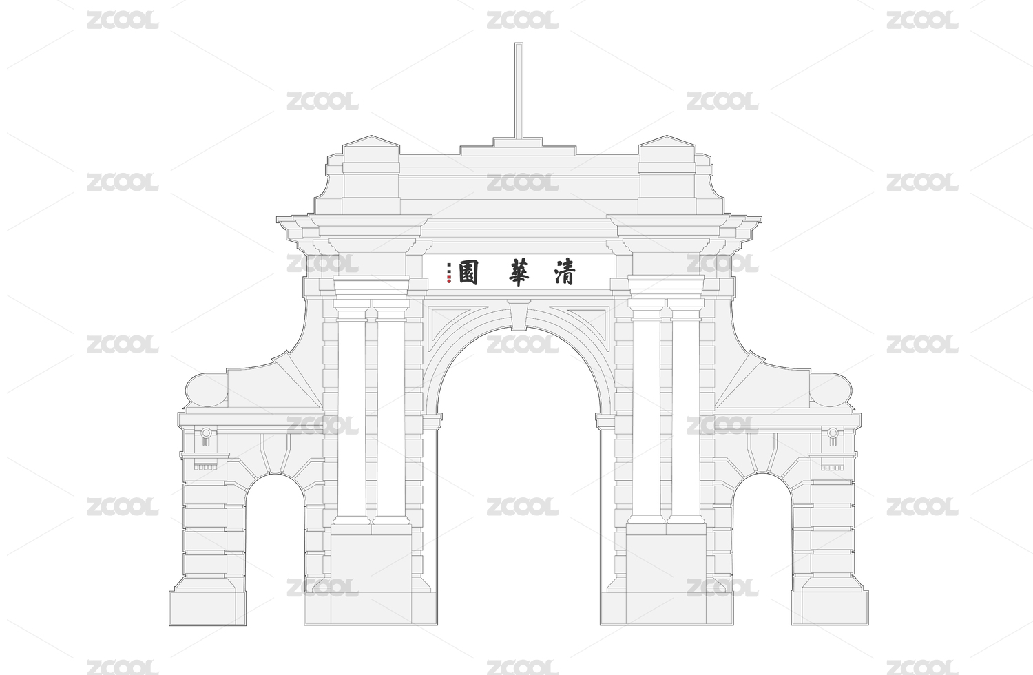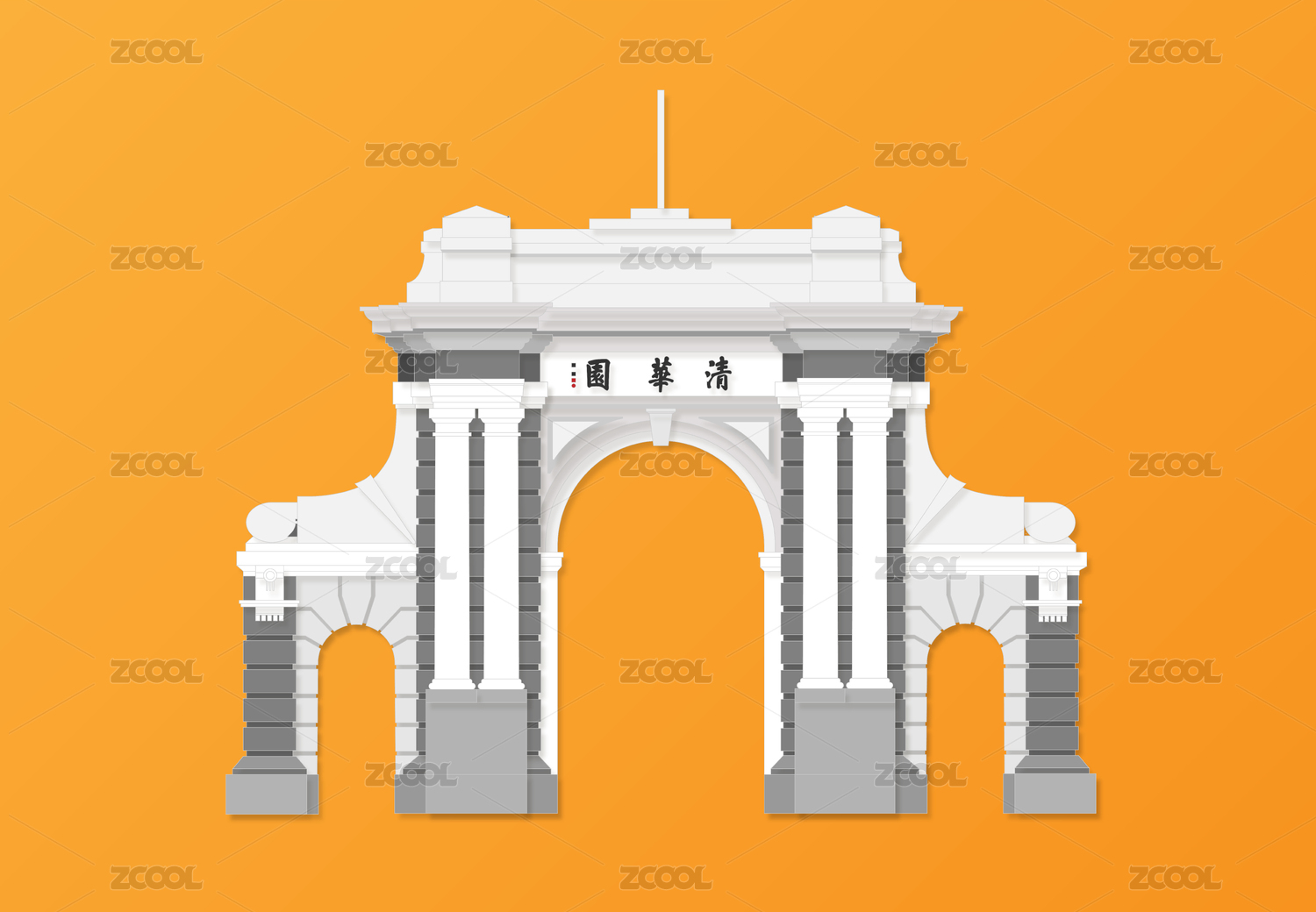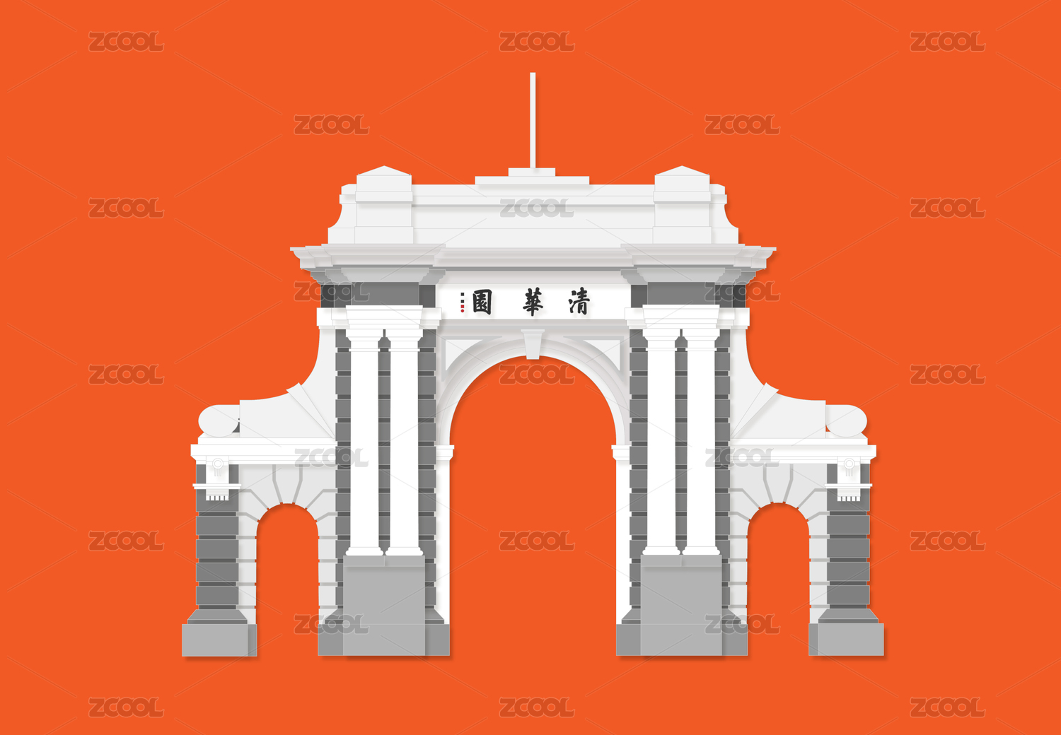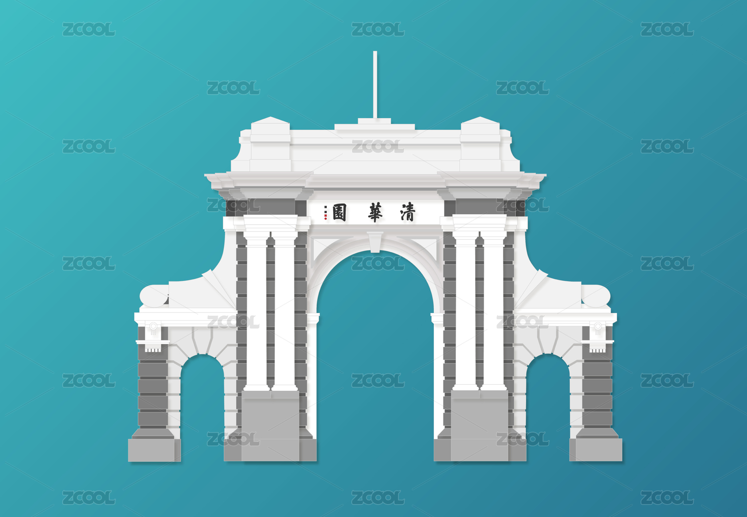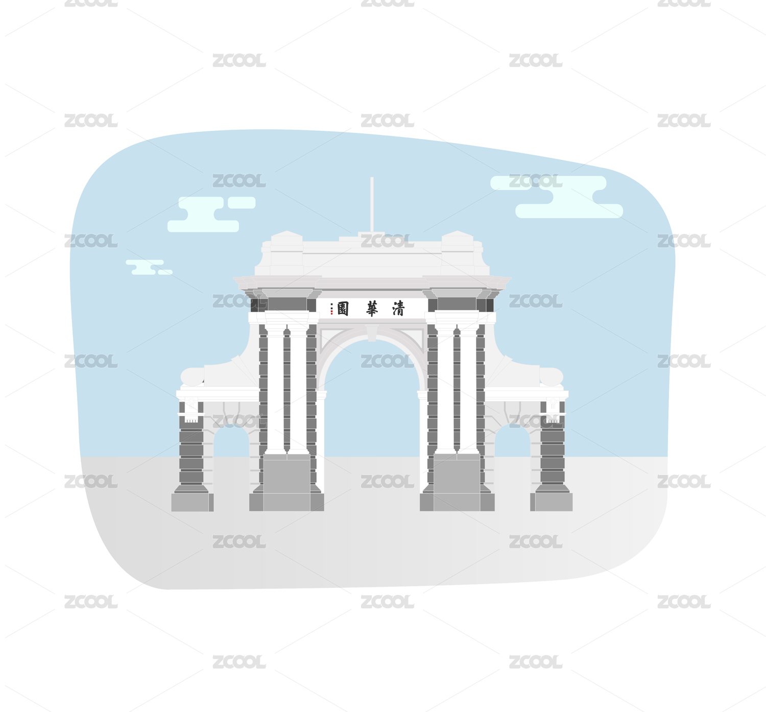 夏天的藍天下,北京清華大學大禮堂和綠草坪