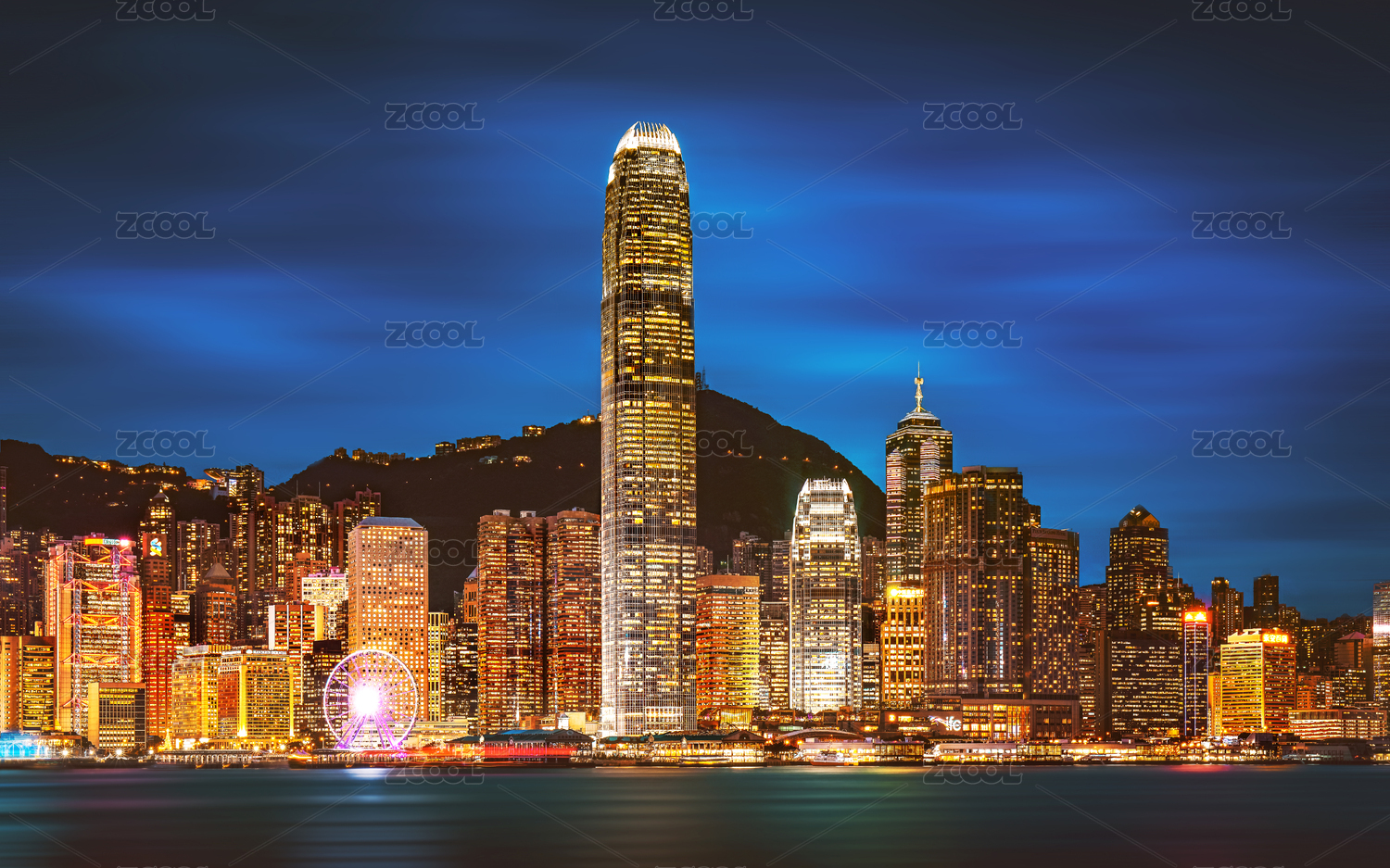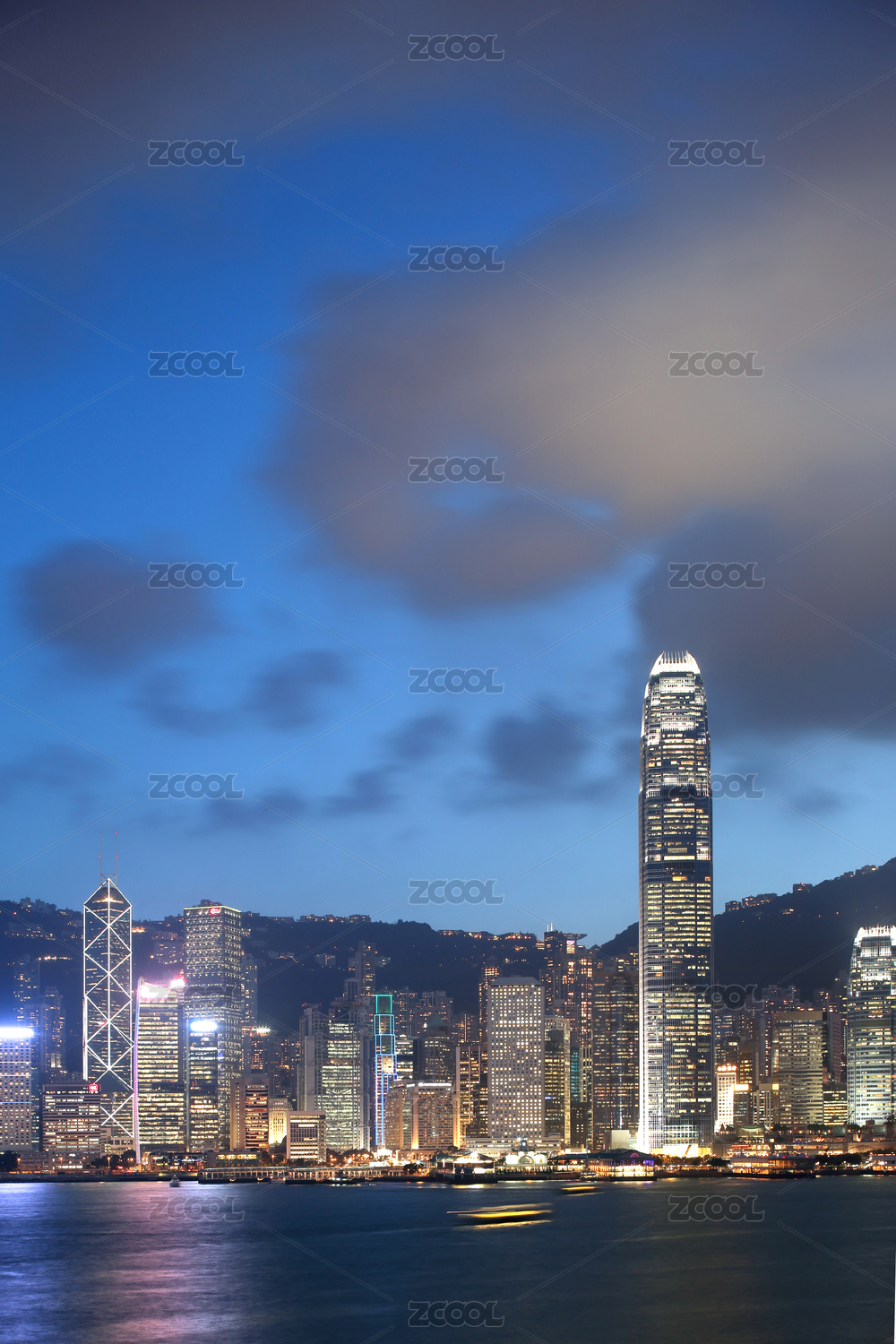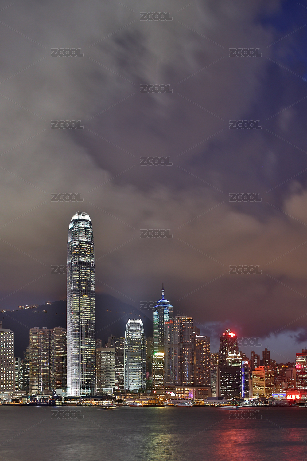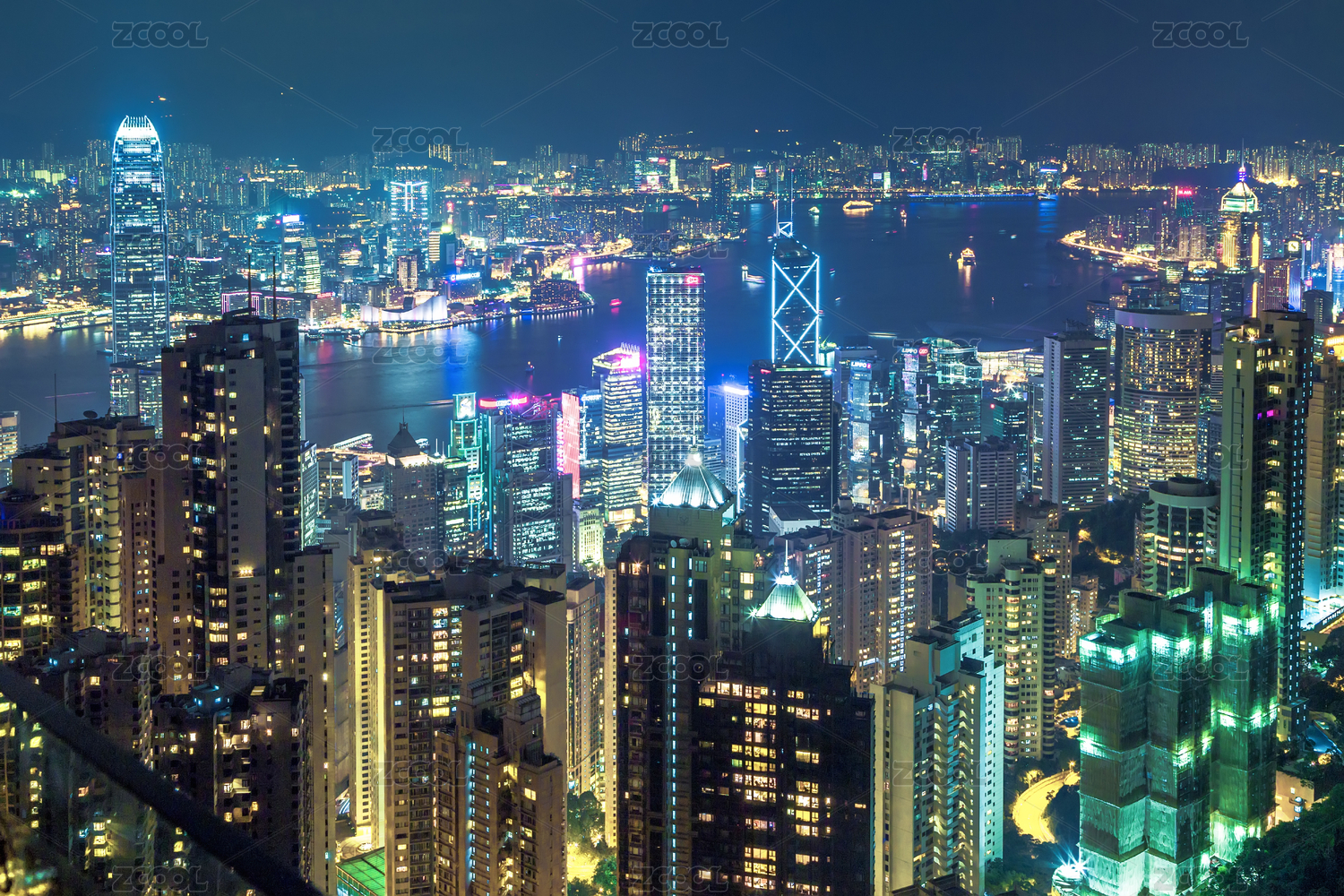 中國香港維多利亞港建筑景觀夜景