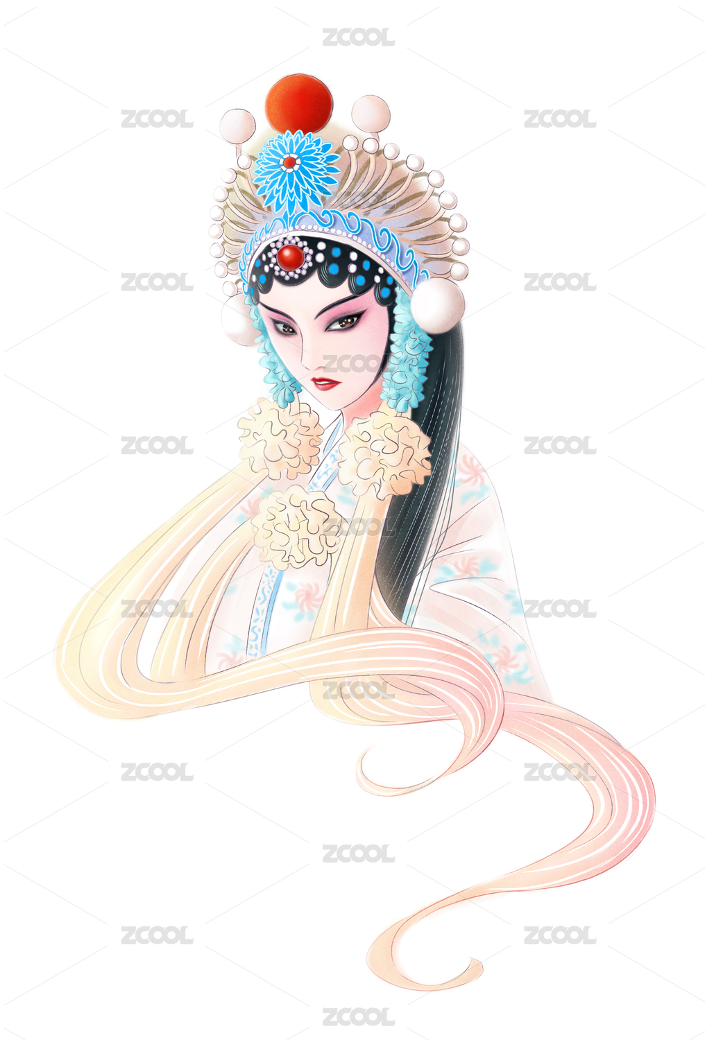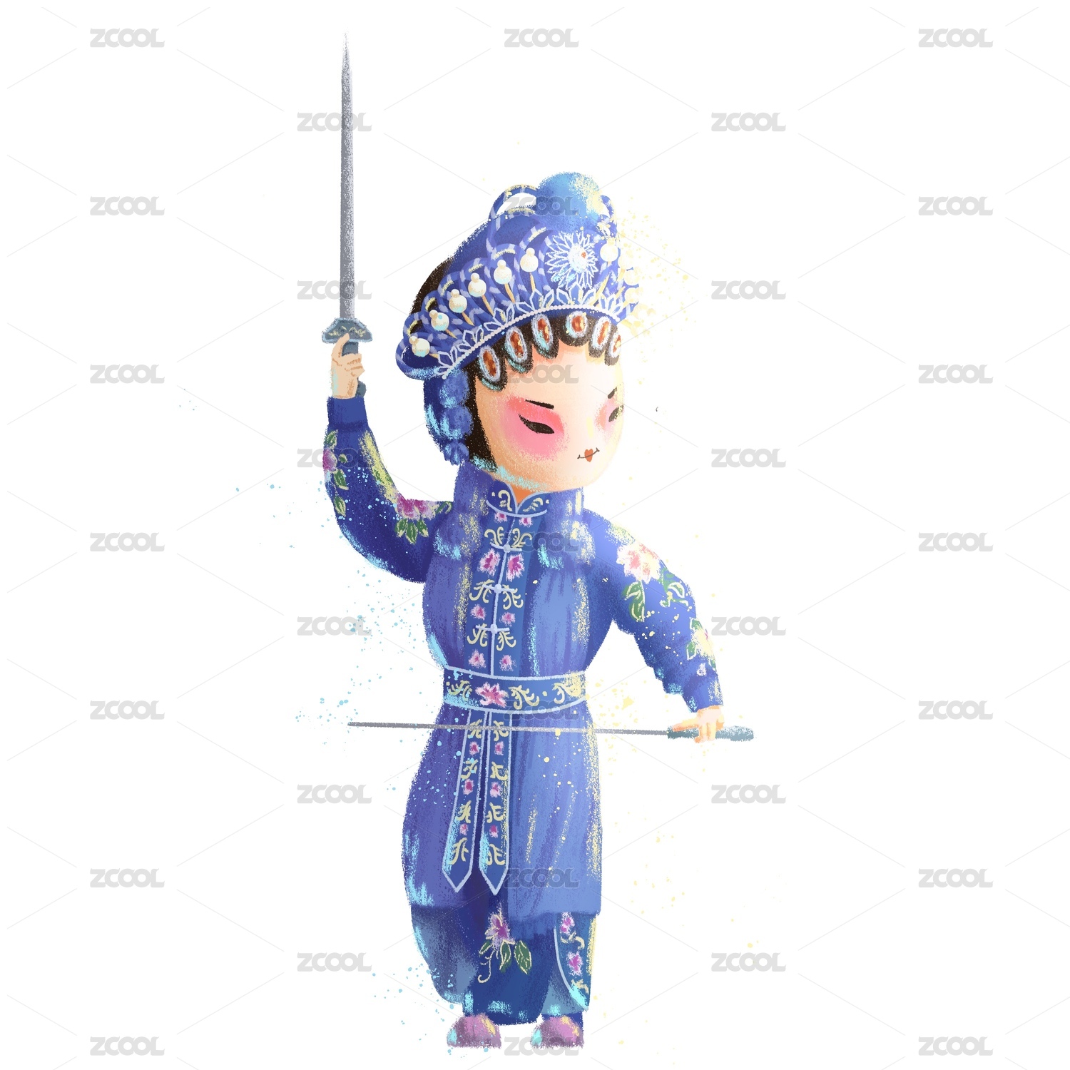 京劇人物白蛇傳里拿著兩把劍的藍(lán)衣小青