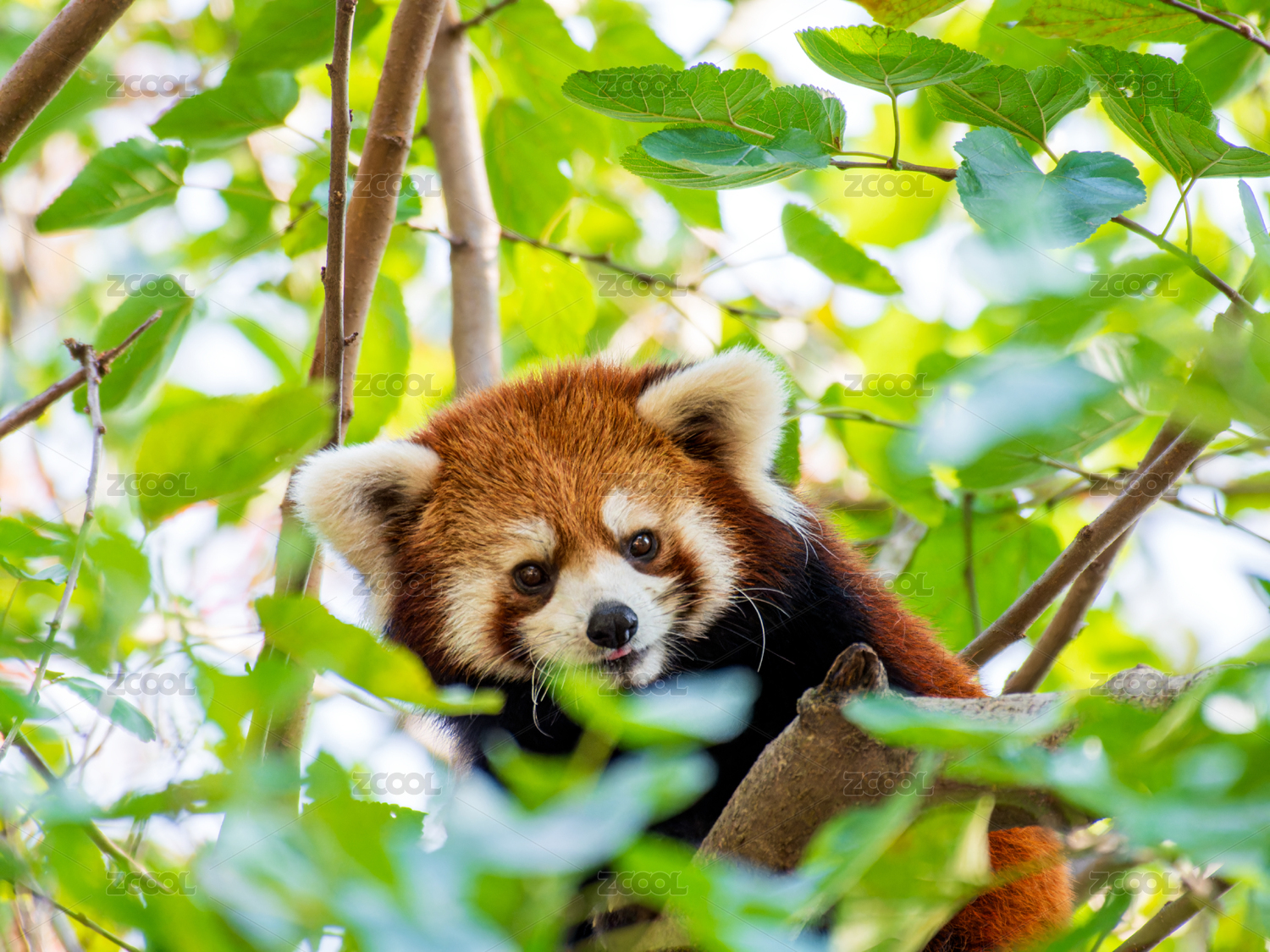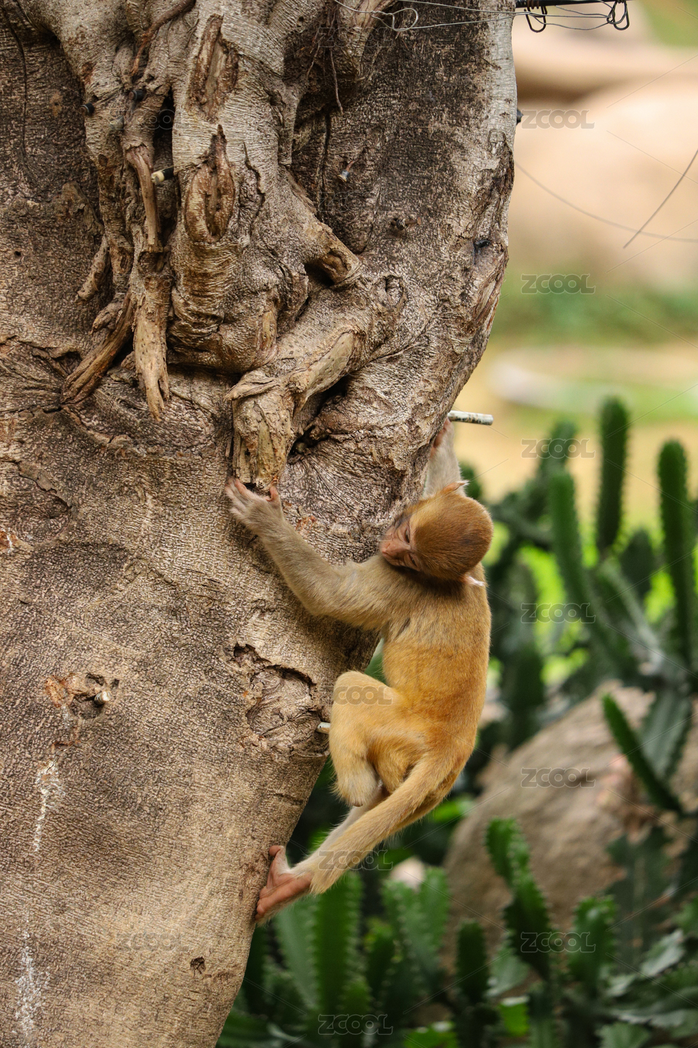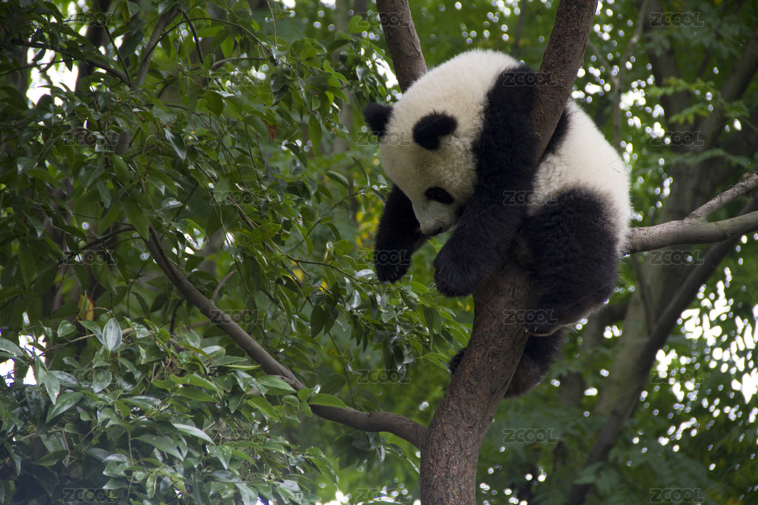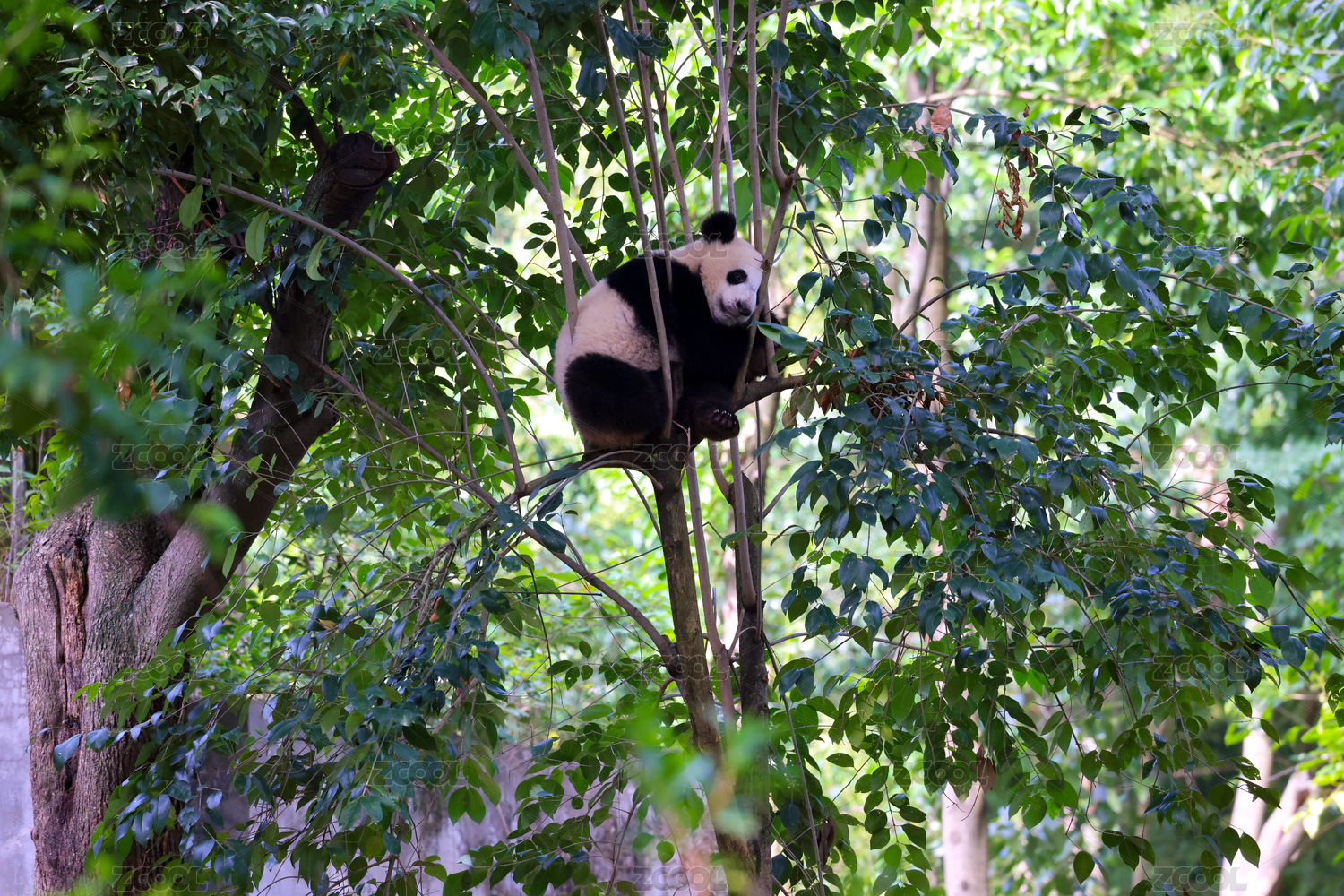 一只可愛(ài)的小熊貓正在攀爬樹干