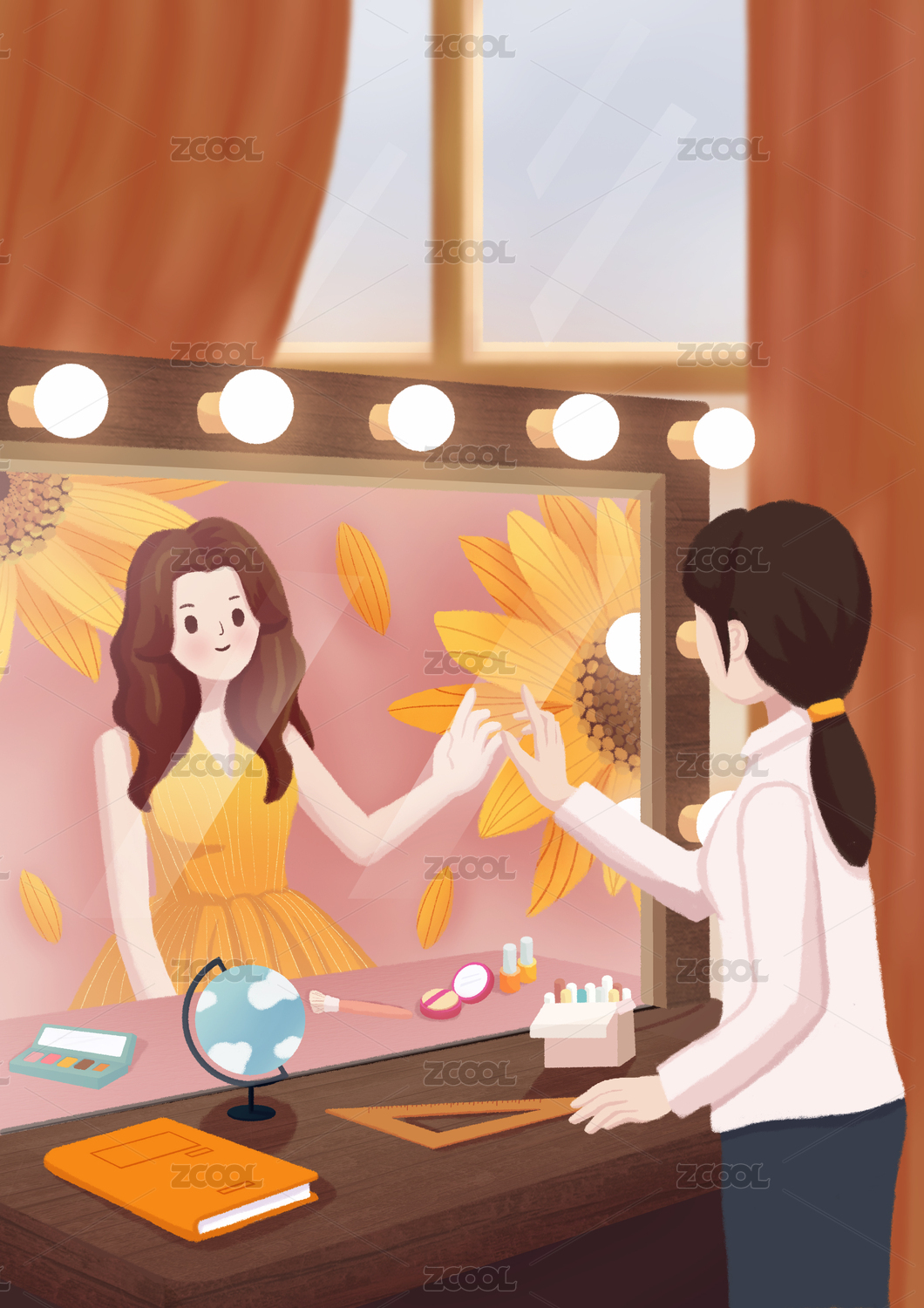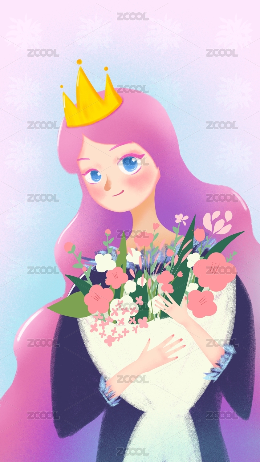 卡通手繪女王節(jié)婦女節(jié)插畫