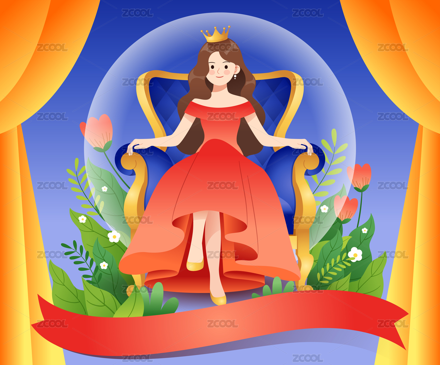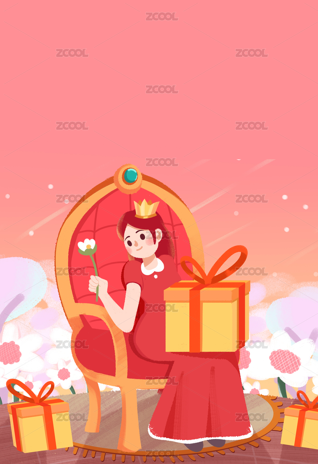 女王節(jié)女神坐在椅子上插畫