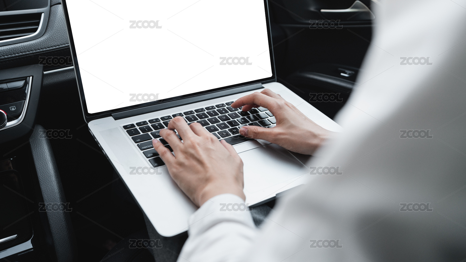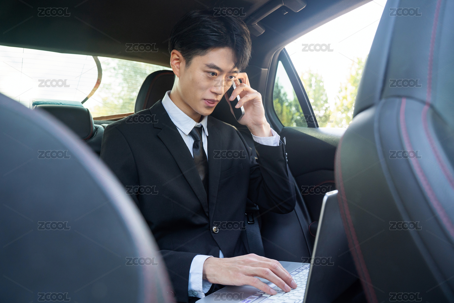 汽車內(nèi)使用電腦辦公的商務(wù)男性特寫