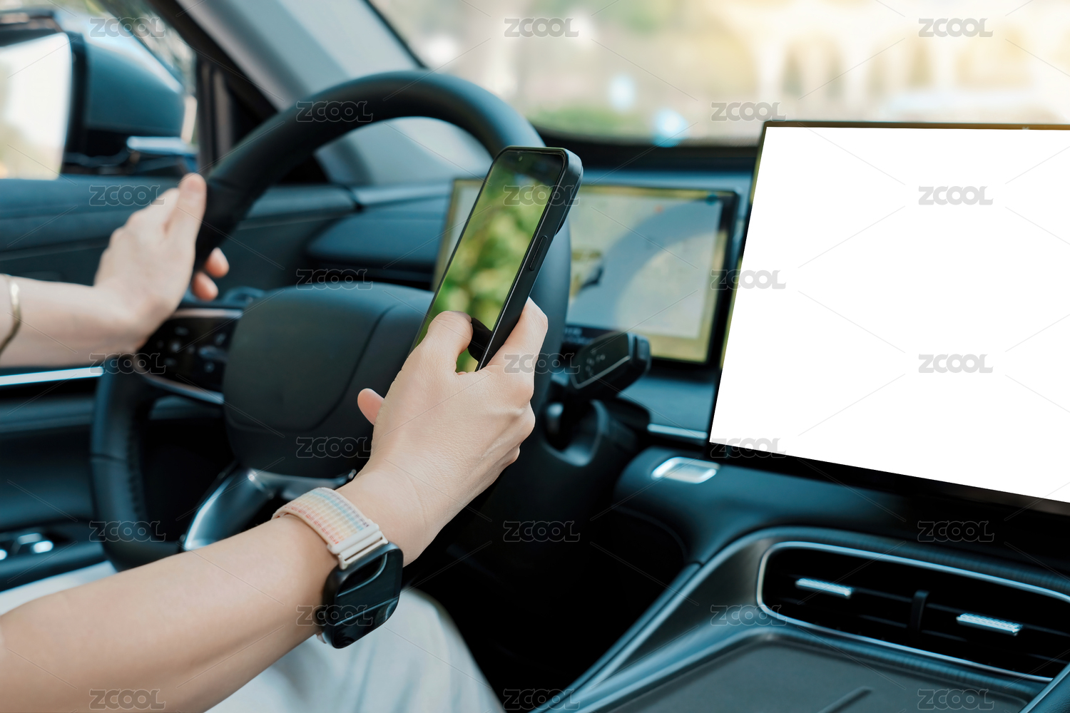 商務(wù)女性坐在車內(nèi)用手機(jī)視頻通話