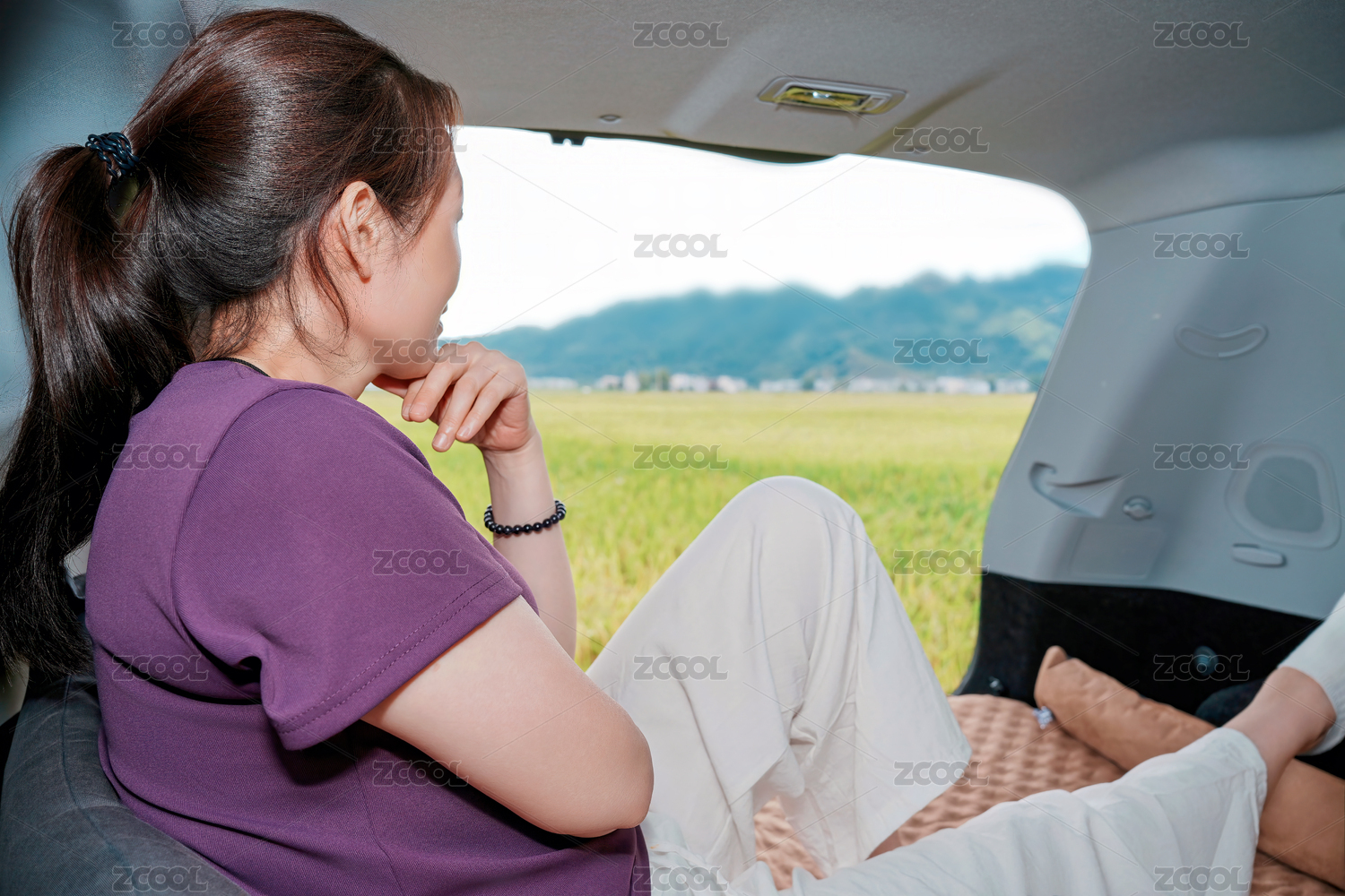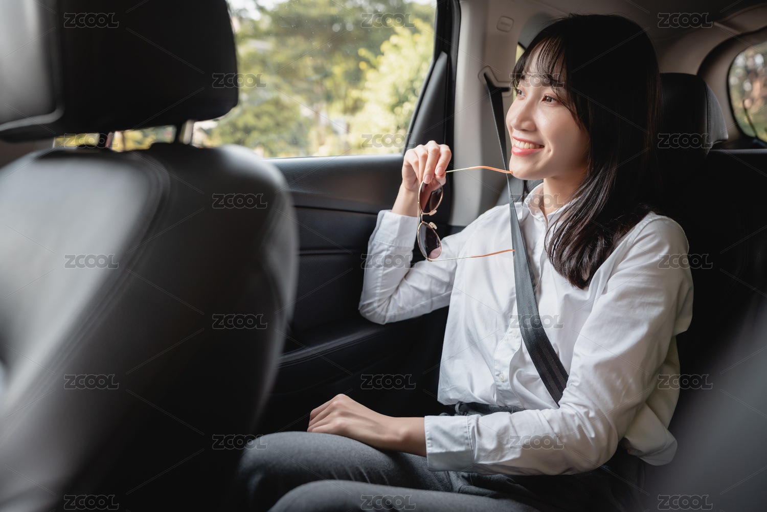 亞洲商務(wù)女性在車內(nèi)看窗外